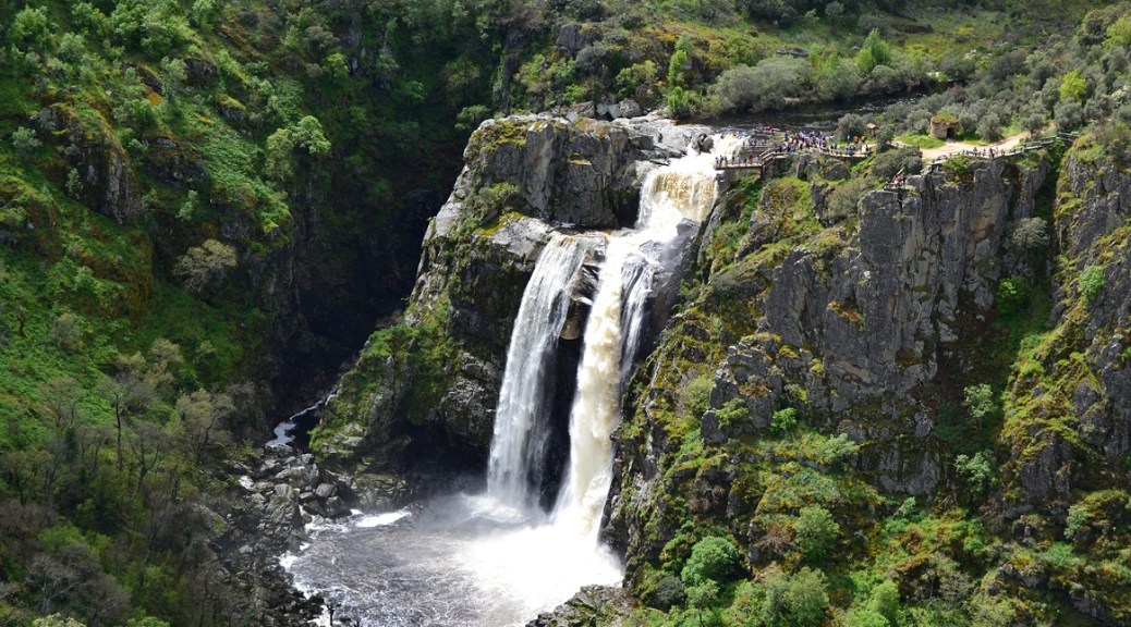 2.- La segunda opción (y que descartamos por falta de tiempo) es ir a través del pueblo de Masueco y dejar el coche más cerca de la cascada. Por esta ruta se accede a un lugar para verla que hay justo al lado de la caída de agua. Se puede apreciar mejor la fuerza y el ruido del agua porque estás casi encima, pero no tienes la panorámica que puedes ver desde el mirador al que fuimos. Pero desde luego recomendable ir a los dos sitios.