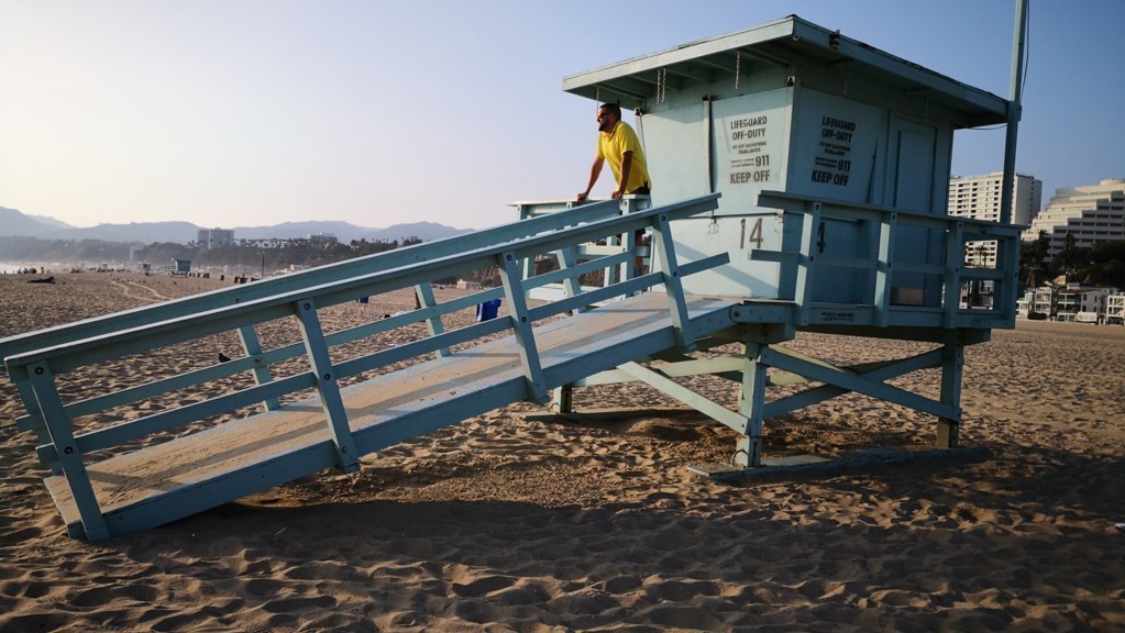Por supuesto bajamos hacia la playa para verla de cerca, era la primera vez en nuestra vida que veíamos el Océano Pacífico y qué mejor lugar que este. También por supuesto no podíamos olvidar las famosas casetas de vigilancia que tan famosas se hicieron en la serie Los Vigilantes de la playa de los míticos Pamela Anderson (C.J.) y David Hasselhoff (Mitch Buchannon) entre otros. Esta serie se comenzó a emitir en 1989 en la NBC y curiosamente fue cancelada tras la primera temporada porque el coste de su producción era muy elevado y su índice de audiencia era bastante bajo, para luego ser un boom nacional e internacional y completarse nada menos que 11 temporadas. Recuerdo como si fuera hoy la sintonía que siendo chavales nos dejaba con la boca abierta. Sin duda fue un momento especial tocar esta playa.