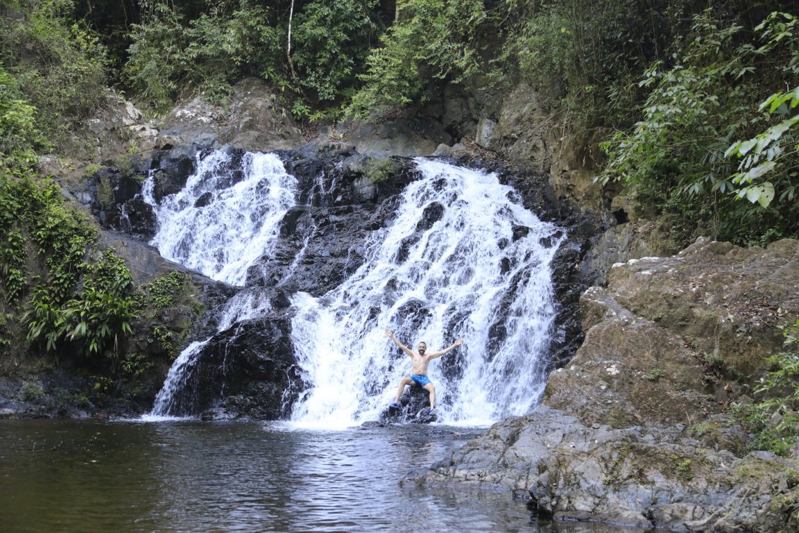 Finalmente y tras una media hora llegamos al afluente del río de donde vendría el salto de agua. Nos bajamos y caminamos un rato por medio de la selva, cosa que también me vuelve loco, el poder disfrutar de tan frondosa vegetación y el ruido de animales a los que no estamos acostumbrados.