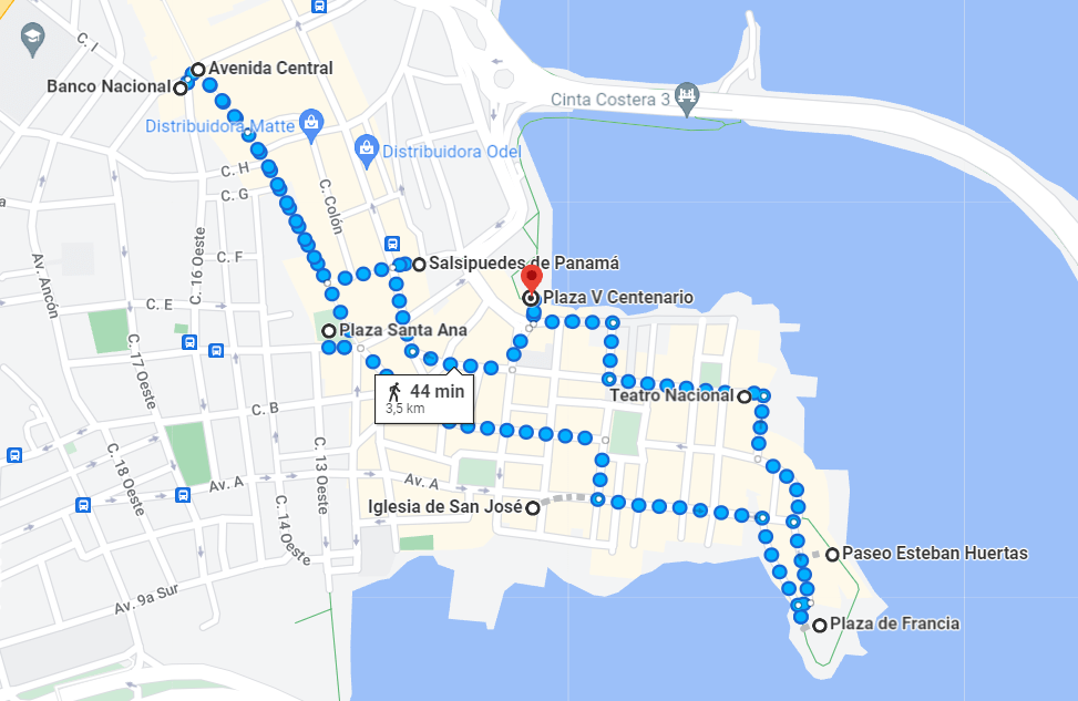 Comenzamos nuestra ruta subiendo la célebre calle 13 Este, más conocida como Salsipuedes, llena de comercios y cuyo movimiento y bullicio dificulta el paso y de ahí viene su nombre. Al final de ella llegamos a la Plaza Santa Ana mientras Jorge comenzaba contándonos la historia de Panamá en general y de la capital en particular.