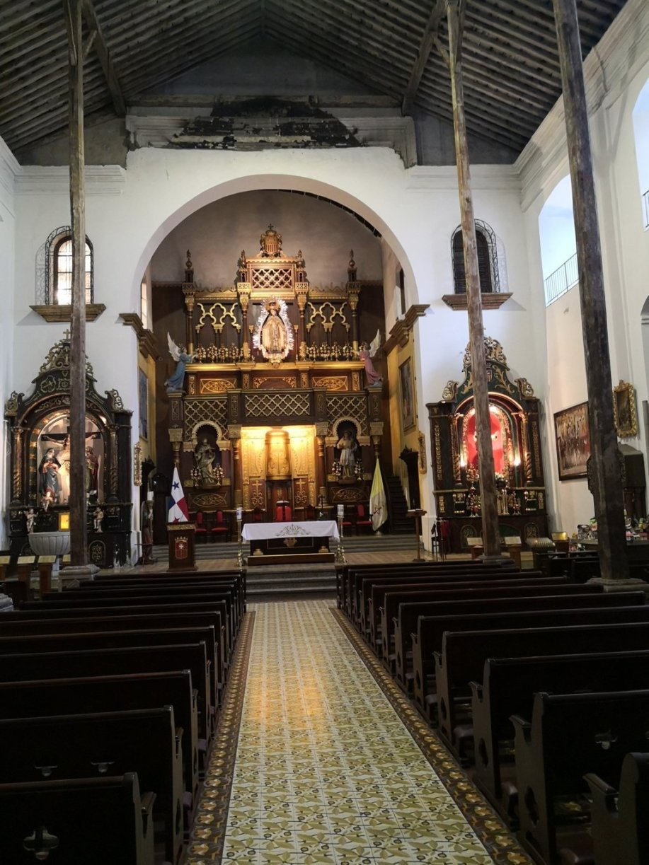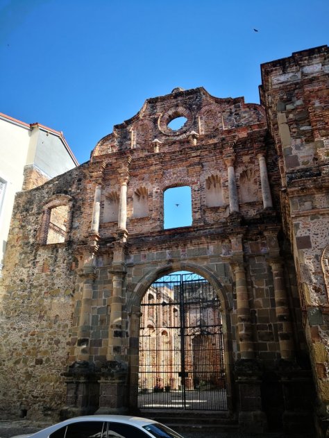 Teníamos a las 16h el Free Tour así que nos tomamos un café para hacer tiempo hasta entonces y visitamos otro nuevo templo antes, Nuestra Señora de la Merced, otra más de las siete iglesias del Casco Antiguo. Esta es la única que mantiene su fachada original de estilo barroco, cuyas piedras labradas se trajeron desde Panamá Viejo tras el saqueo de los piratas.