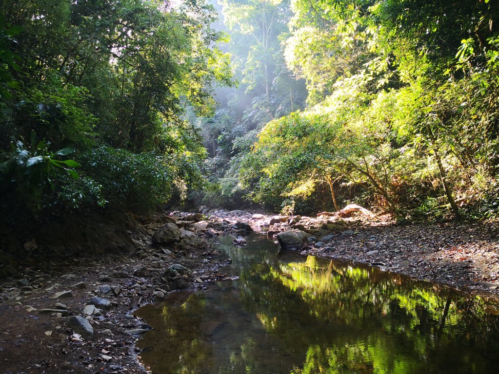 Tras un buen rato llegamos al final de la playa y cruzamos un riachuelo, en ese momento recomiendo, si váis caminando, tomar el camino de la derecha. Os encontraréis un sendero más estrecho y de verdad váis a disfrutar el caminar entre tan frondosa vegetación.