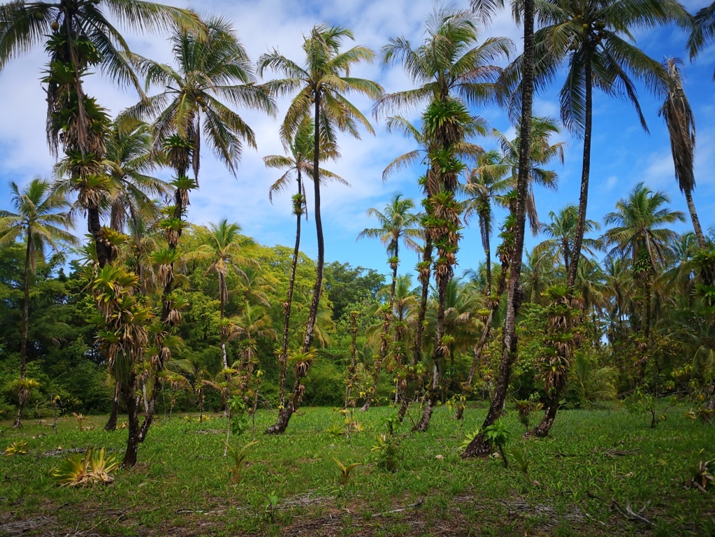 En la parte del otro lado de la isla, hacia el sur, a pesar de que había bastantes palmeras tumbadas supongo que fruto de algún temporal, vimos la que sería nuestra playa favorita, con una arena y unos colores del mar espectaculares, por supuesto la temperatura del agua estaba perfecta para mí.