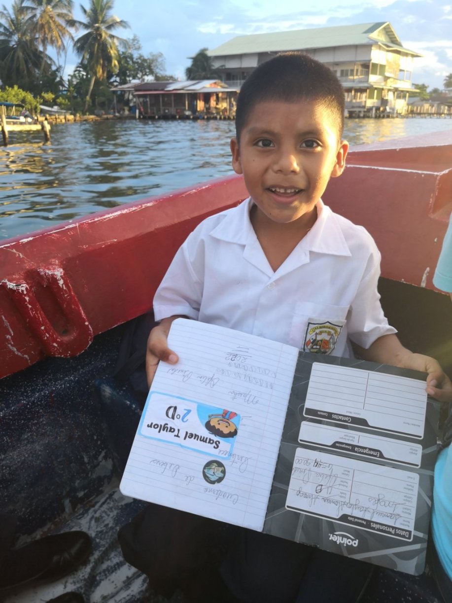 Desde allí decidimos ir a un bar que había oído que tenía un ambiente muy agradable pero que está en la cercana isla de Carenero, en su parte suroriental. Nos acercamos a un embarcadero y enseguida nos subimos en una de las múltiples barcas que transportan a gente entre islas y tras pagar 2$ llegamos enseguida a nuestro destino. En la barca iban colegiales con los que hablamos y nos enseñaron orgullosos sus cuadernos.