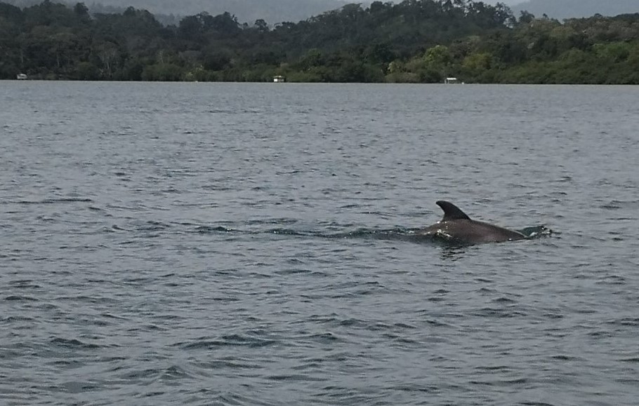 Tomamos dirección sur para en unos 20 minutos llegar a la Isla Cristóbal, en la que se encuentra la llamada Bahía de los Delfines (localmente conocida también como laguna Porras) y que lógicamente se llama así porque es lugar en el que frecuentemente se suelen ver a estos cetáceos, concretamente la especie llamada de nariz de botella. La verdad que no había masificación de barcas como nos hemos encontrado en otros tours similares, por ejemplo en Filipinas. Vimos algún delfín en la distancia dando saltos y la experiencia, pues bueno, no estuvo mal aunque todo a bastante distancia.