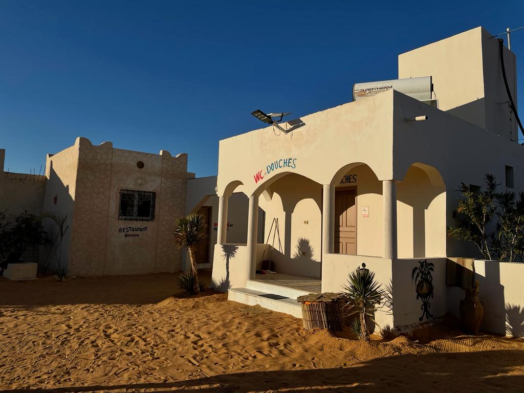 Llegamos al Ksar Guilane, un antiguo cuartel francés convertido ahora en varios campamentos enclavados en un oasis en medio del desierto y alimentados por un muy curioso manantial de aguas termales.