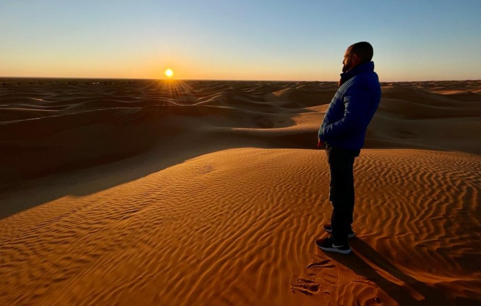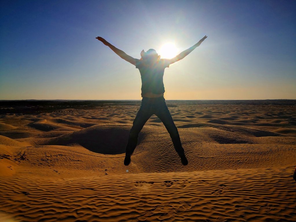 Eran como las seis de la tarde y dejamos el equipaje a toda prisa porque la puesta de sol se acercaba y queríamos verlo entre las dunas, así que corrimos a adentrarnos entre ellas para disfrutar de tan increíble espectáculo. Otra vez recordé lo que es esta maravillosa experiencia, el silencio impresionante del desierto, qué climax… aquí os dejo un vídeo cortito y una foto que espero os dé ganas de sentir esta maravillosa sensación.