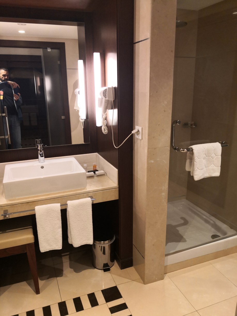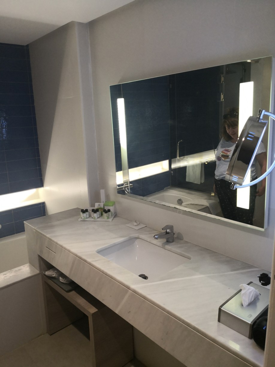 Y las habitaciones estaban también muy bien, con la ducha separada del retrete, con albornoz, chanclas de cortesía y hasta una cesta de fruta de bienvenida. Tuvimos algún problema para disponer de una habitación triple pero finalmente nos trajeron la tercera cama y se pudo solucionar.
