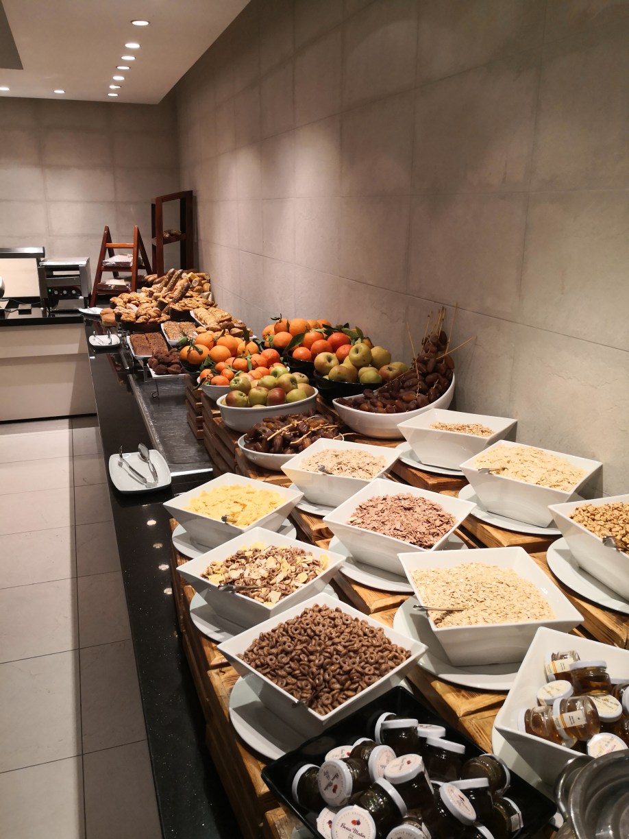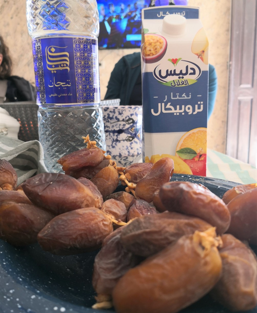 Sobre las seis fuimos a desayunar que para estar donde estábamos no estuvo mal, básico pero bien, café, pan tostado, algunos dulces y dátiles.