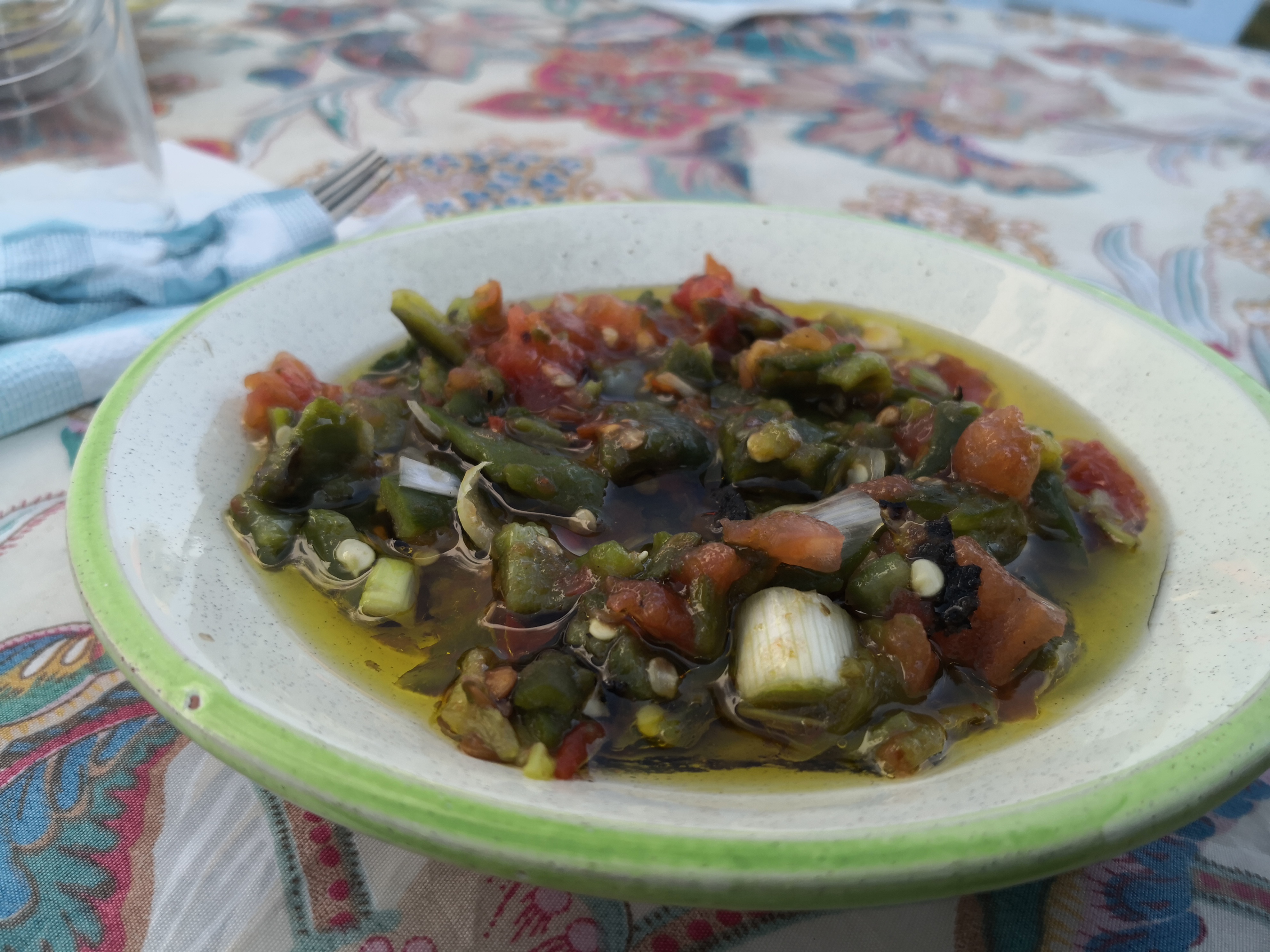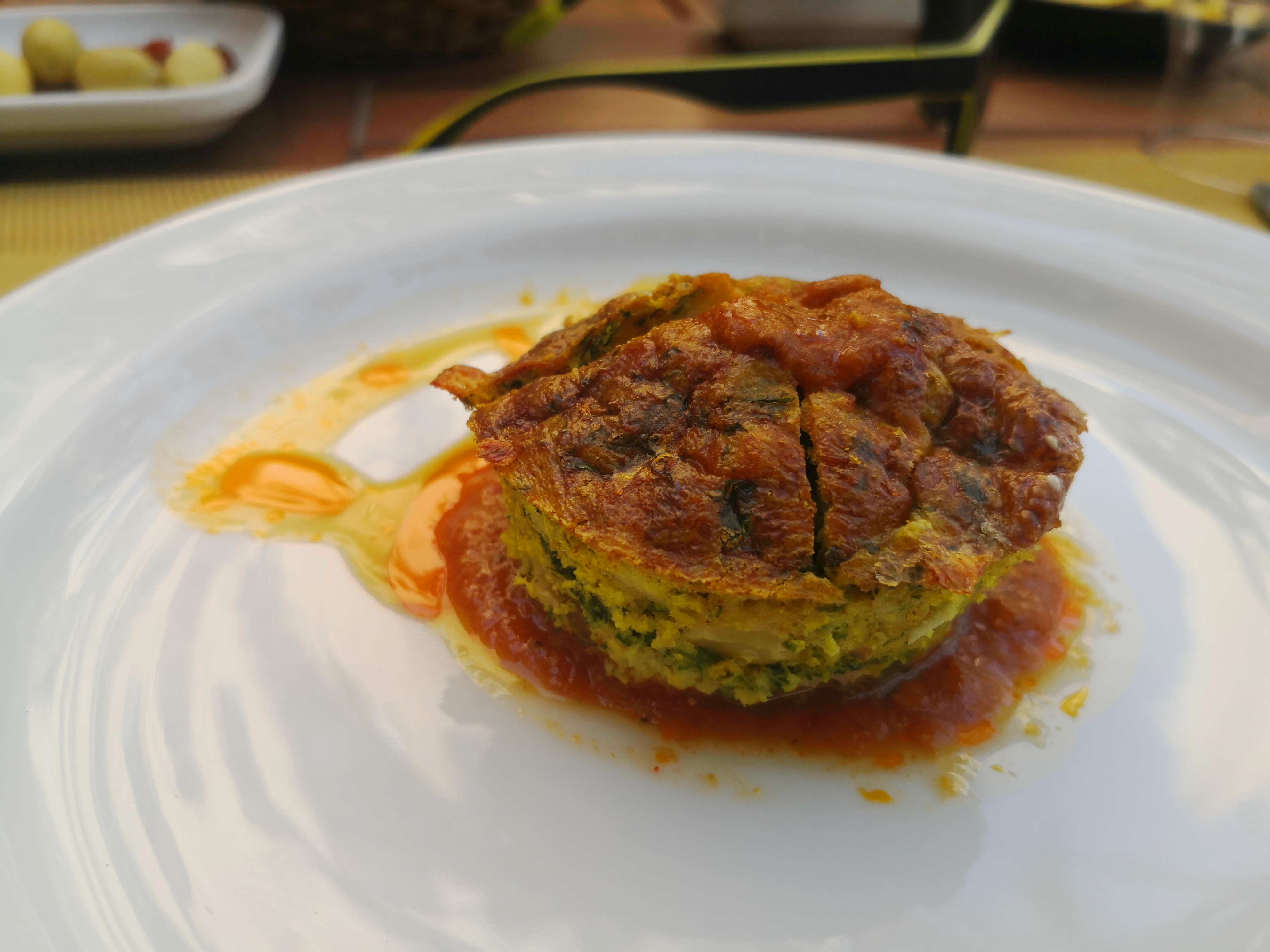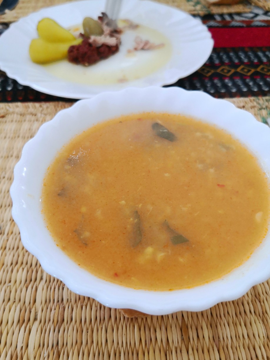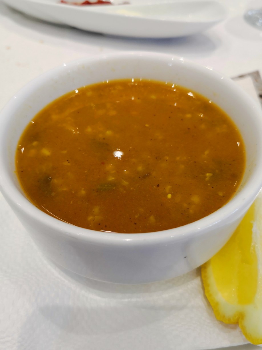 Llegaba la hora de comer y Abderrahman nos llevó a un restaurante en la localidad de Guermassa, llamado Realais Dar Guermassa. Comimos una sopa, como no, que probaríamos muchas veces en este viaje y a mí, sopero por excelencia lo comía encantado, picaba un poco, pero nada exagerado. Luego nos dieron un brik, una especie de empanadilla de queso y huevo, muy buena, y un plato de otro clásico, pollo. Todo muy rico y la verdad que salimos encantados.