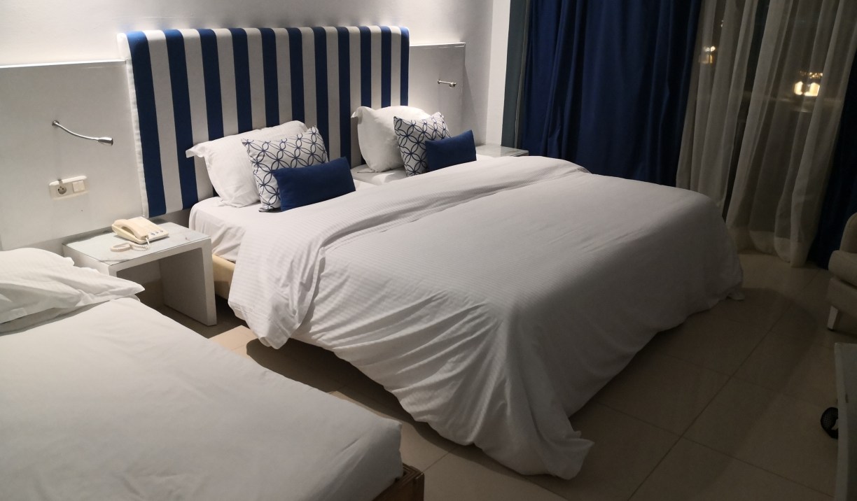 Solicitamos nuestra habitación triple y de nuevo como el primer día en el Laico Túnez, no la tenían preparada. Hubo un par de llamadas de Abderrahman con su contacto de nuestra agencia en Túnez para quejarse y surtió efecto, porque nos dieron nada más y nada menos que ¡¡¡una estupenda suite en la última planta!!!!!