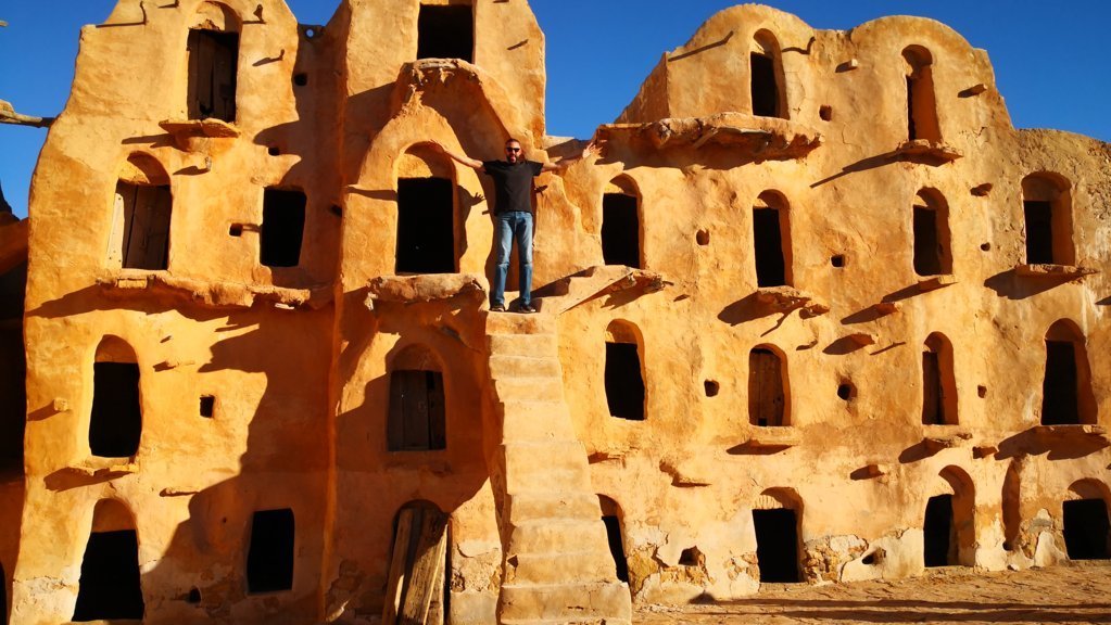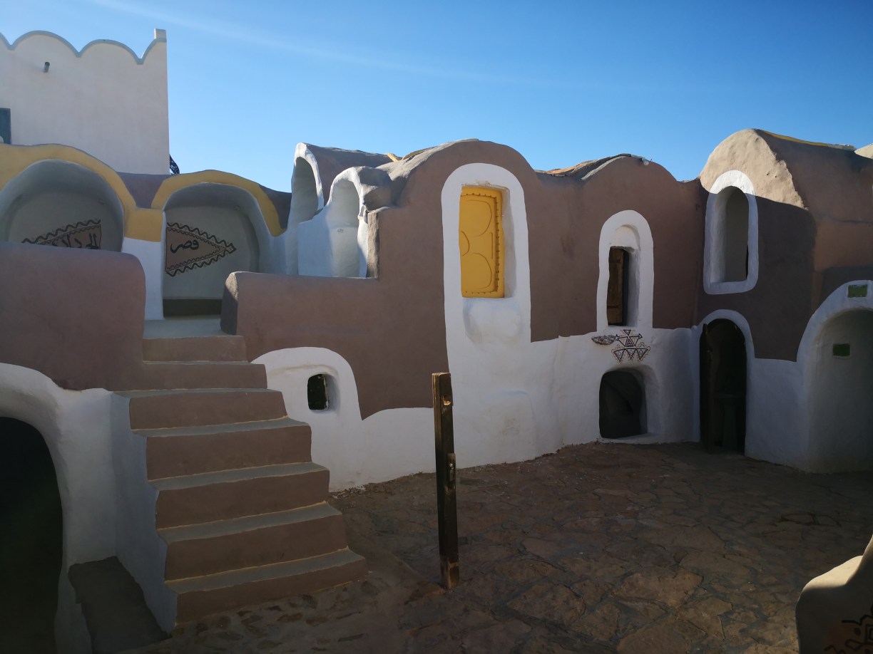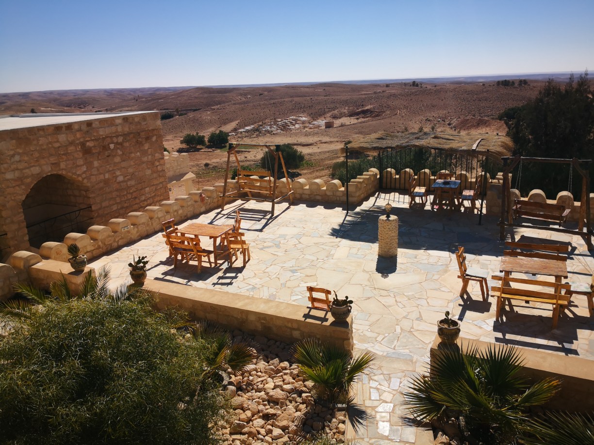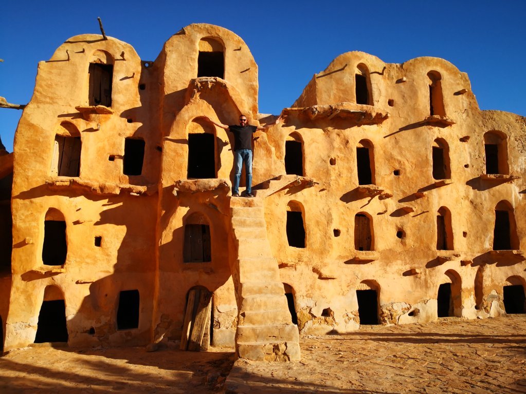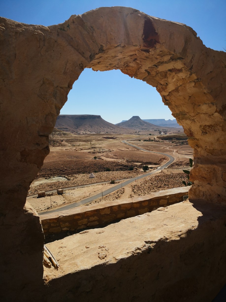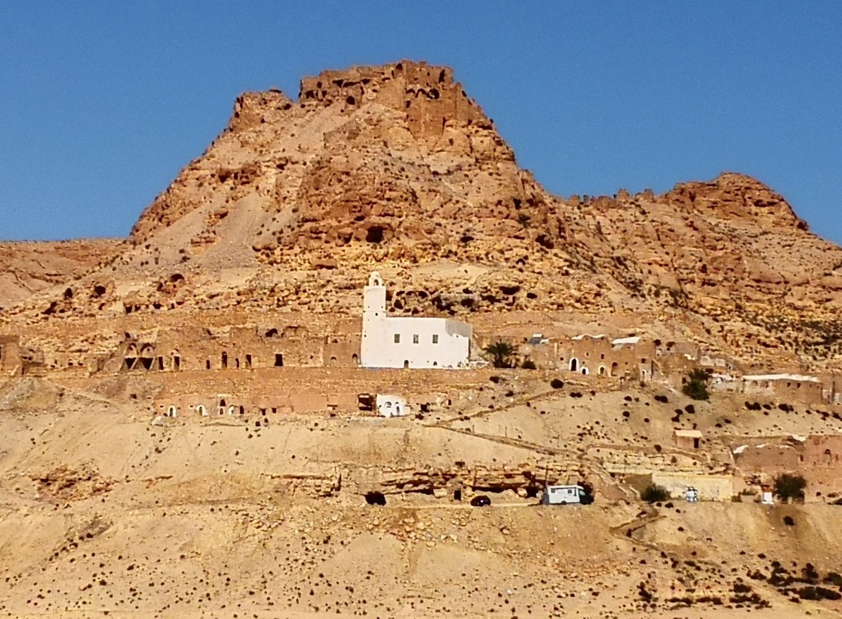 ¿Y qué son los ksar o ksour en plural? pues estos “castillos del desierto” se definen comúnmente como graneros que aprovechaban también como vivienda las tribus nómadas bereberes de la región. Allí almacenaban sus cosechas para protegerlas de los saqueadores, en compartimentos superpuestos llamados ghorfas. Todos ellos distintos y espectaculares, los Ksour se parecen a grandes colmenas, formadas por celdas superpuestas en torno a un gran patio y algunos de ellos incluso se esculpían en las montañas de manera que así pasaban más desaparecibidos ante los posibles invasores. Esa mañana comenzaríamos visitando estos últimos, excavados en lo alto de pequeños cerros o picos.