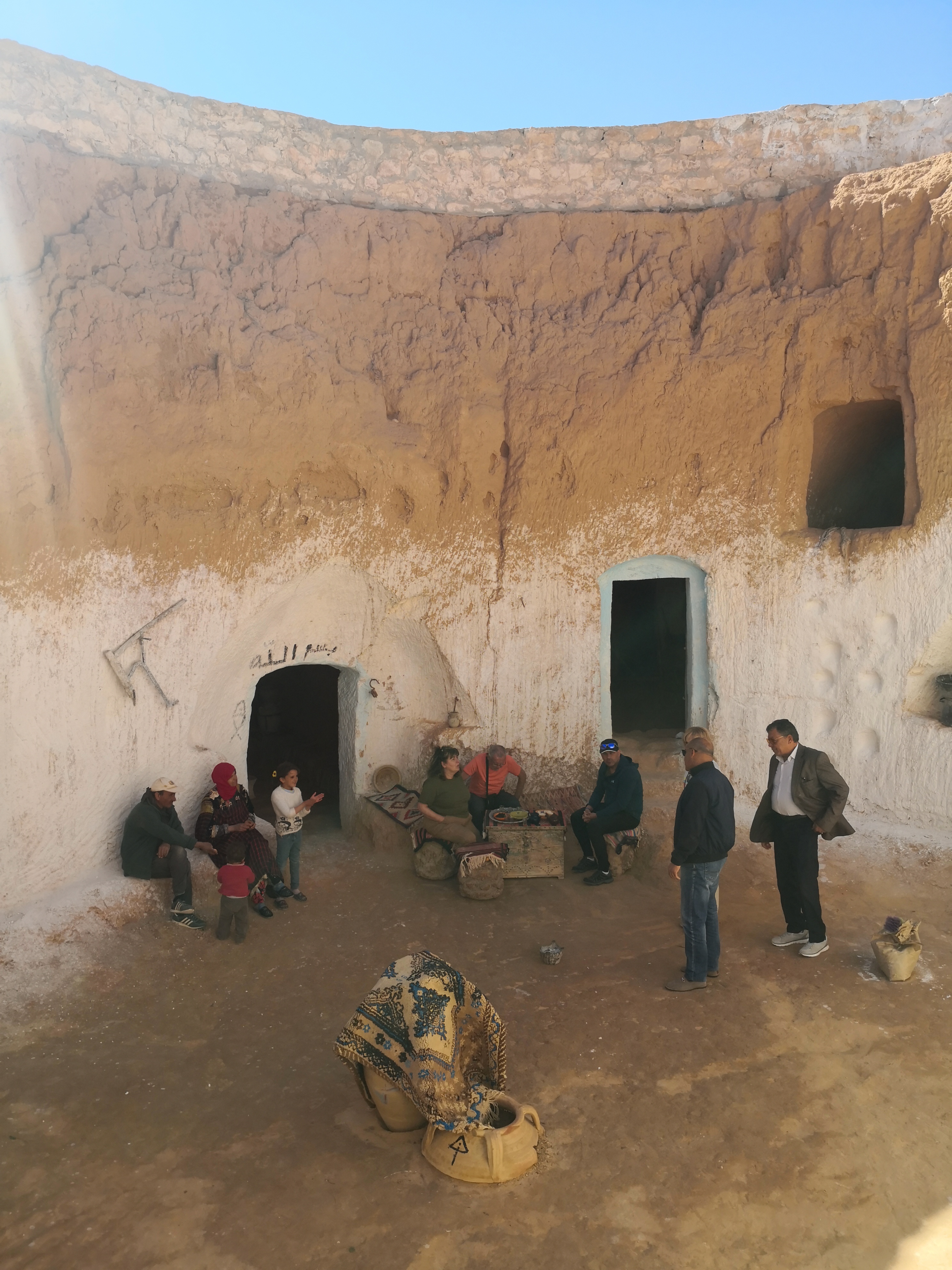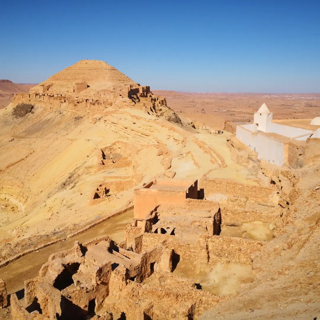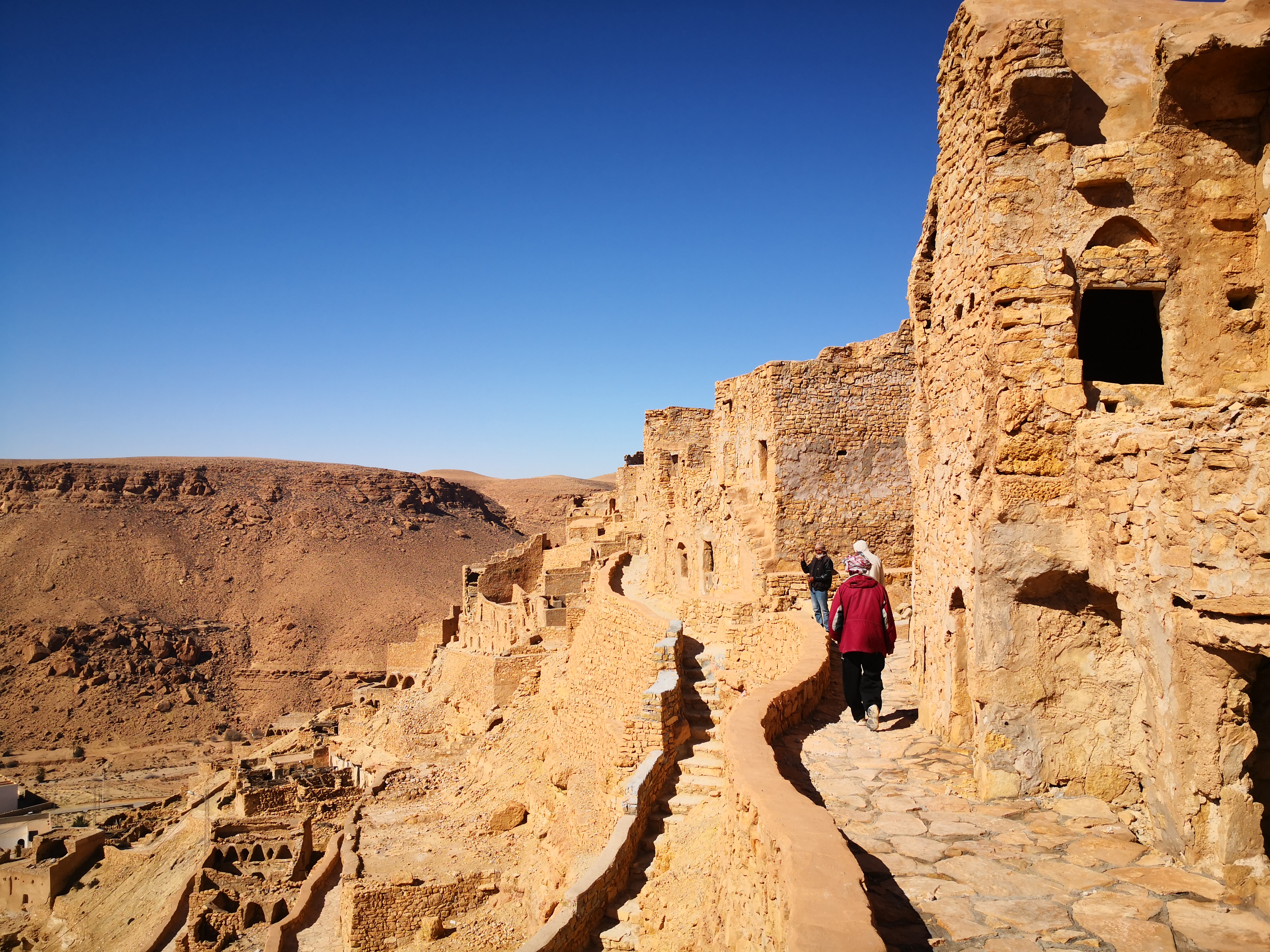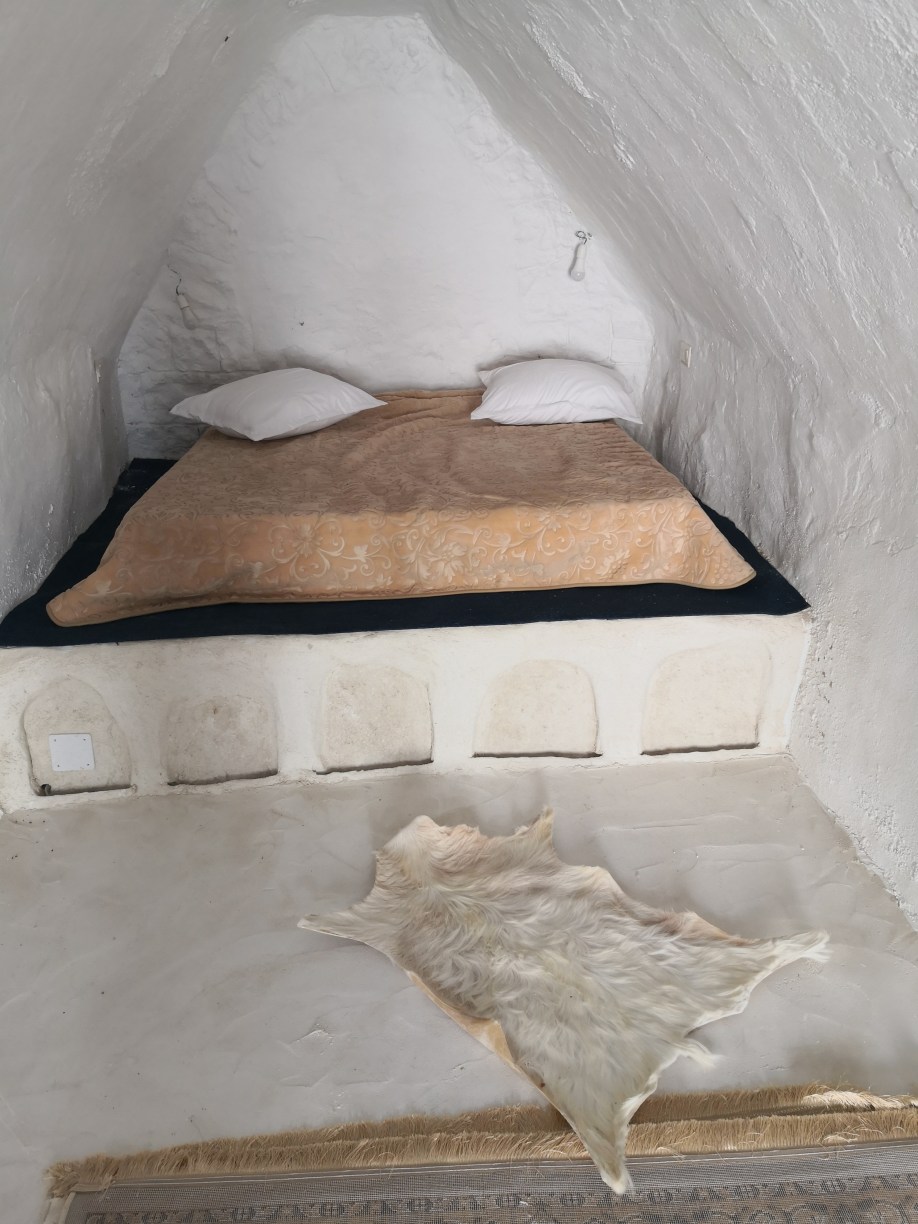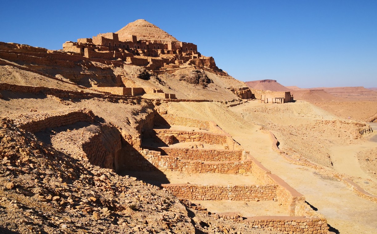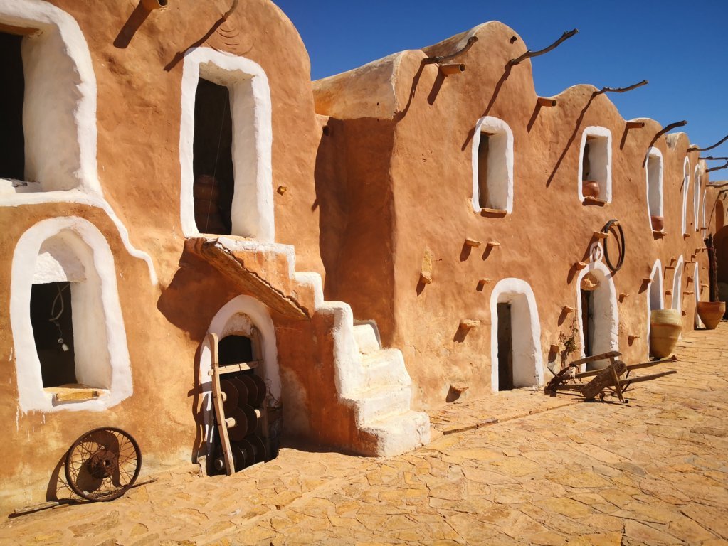 ¿Y qué son los ksar o ksour en plural? pues estos “castillos del desierto” se definen comúnmente como graneros que aprovechaban también como vivienda las tribus nómadas bereberes de la región. Allí almacenaban sus cosechas para protegerlas de los saqueadores, en compartimentos superpuestos llamados ghorfas. Todos ellos distintos y espectaculares, los Ksour se parecen a grandes colmenas, formadas por celdas superpuestas en torno a un gran patio y algunos de ellos incluso se esculpían en las montañas de manera que así pasaban más desaparecibidos ante los posibles invasores. Esa mañana comenzaríamos visitando estos últimos, excavados en lo alto de pequeños cerros o picos.