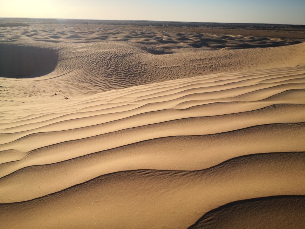 Dejamos la altitud de las colinas y nos adentramos ya sí, en un paisaje que ejerce en mi una fascinación que no entiendo muy bien de dónde me viene, el paisaje árido, desértico, primero pedregoso y luego más adelante ya donde empezamos a ver esa arena fina y dorada que anticipa la llegada de ese coloso llamado Sáhara.