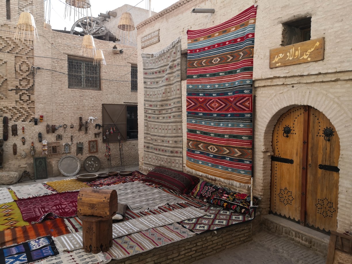 Al salir, cruzando la calle, teníamos la visita a la fábrica de alfombras (Cooperative des Tapis). Ninguno íbamos con intención de comprar pero bueno, normalmente estas visitas suelen ser interesantes, sobre todo porque algo se suele aprender. Tuvimos buen recibimiento con té y dulces, un poco de bromas y luego a la venta. Sinceramente no me gustó mucho la actitud finalmente del vendedor, que pasó de la información a la insistencia en tratar de vender, rozando la incomodidad, así lo vivimos todos.