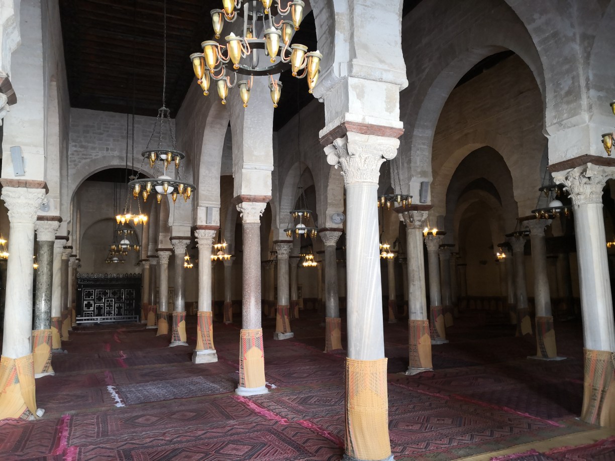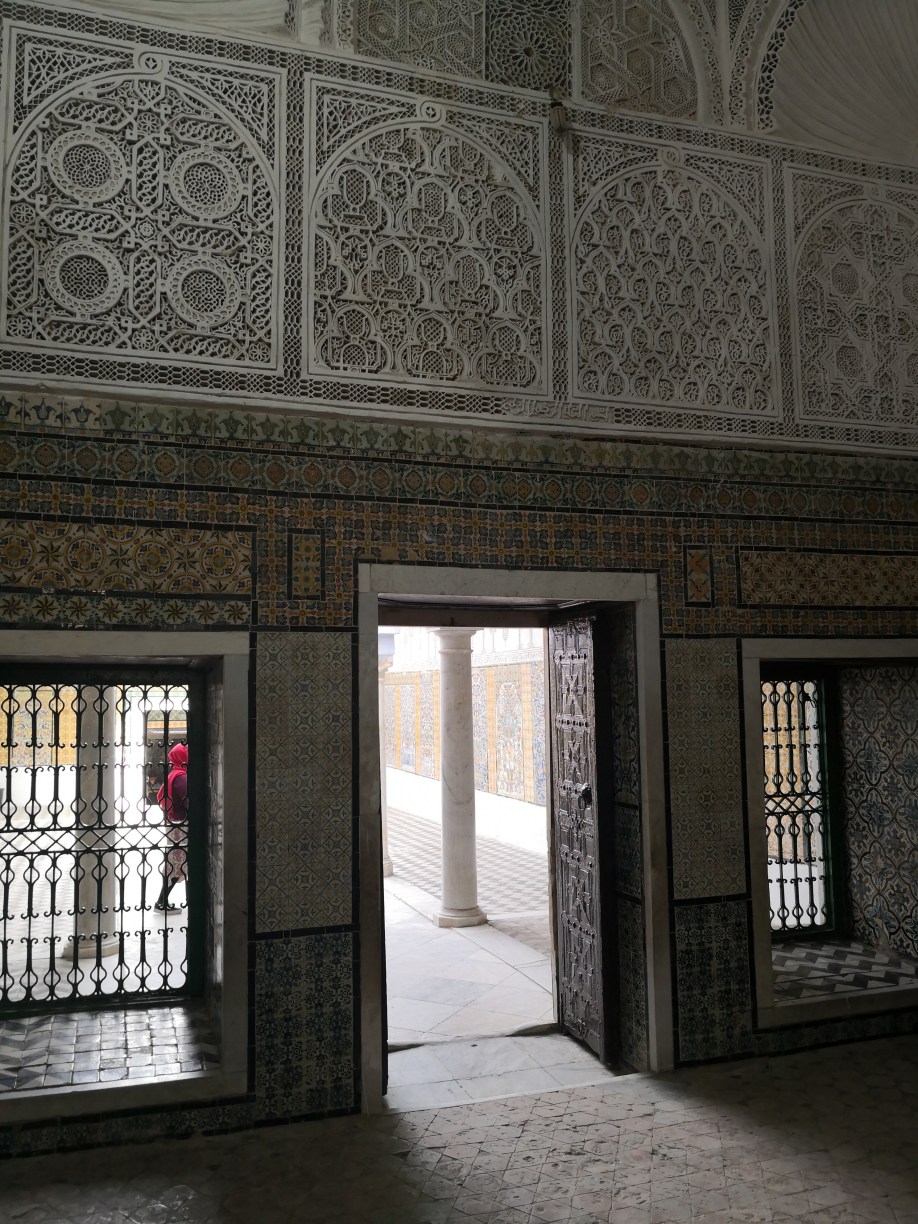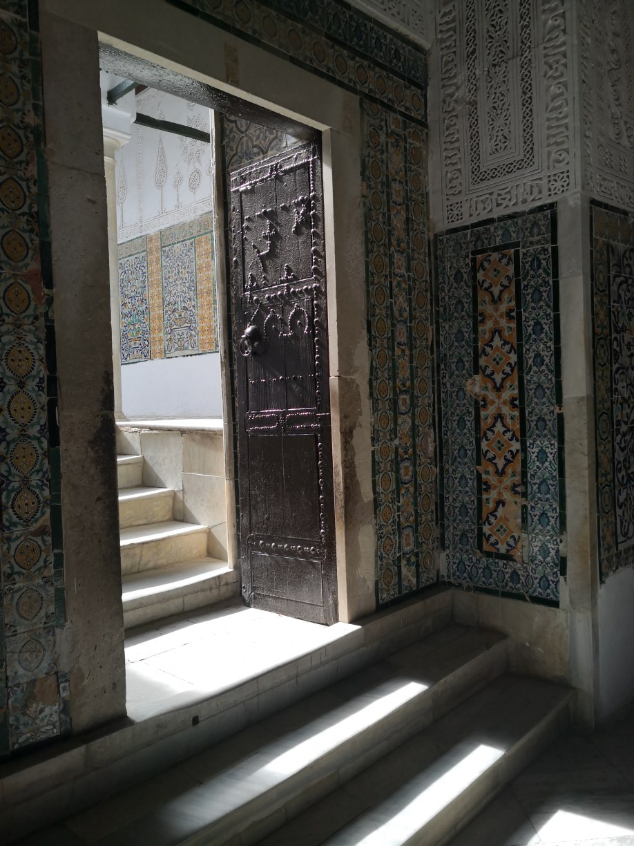 Comenzamos viendo el llamado mausoleo del barbero y que alberga la tumba de Abou Dhama, un discípulo de Mahoma que era apodado “Sidi Sahab”, es decir, “el portador de tres pelos”, ya que se creía que llevaba con él tres pelos de la barba del Profeta. La mezquita fue construida en el siglo VII y ampliada en el siglo XVII. Tengo que decir que es muy bonita y que merece la pena la visita, además encontraréis sus paredes y columnas con bonitos azulejos de Nabeul y yesería de estilo andalusí que os recordará a la Alhambra de Granada.