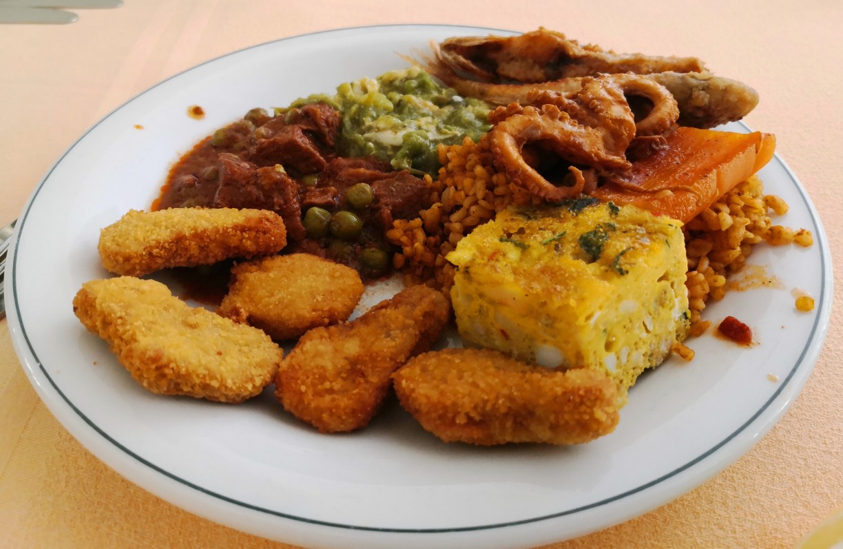 Aquí nos hicimos varios popurrís de comida, un poco de aquí, otro poco de allí…