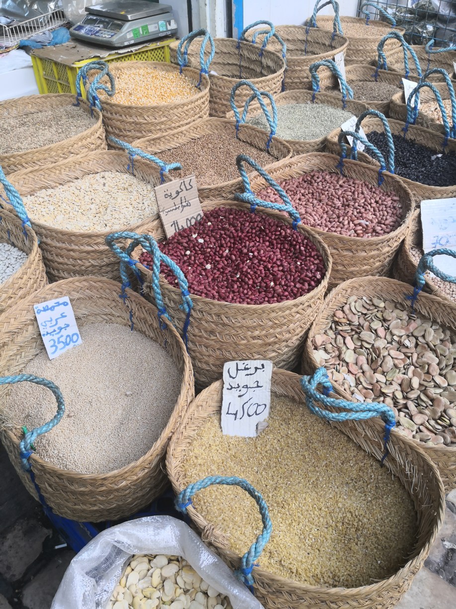 Tras dar un pequeño paseo para ver la mezquita por fuera y algunas calles estrechas, tomamos la calle principal para ver los puestos de los comerciantes, en los que siempre encontramos muchas clases de aceitunas, no en vano Túnez es uno de los mayores productores del mundo de aceite de oliva junto con España e Italia.