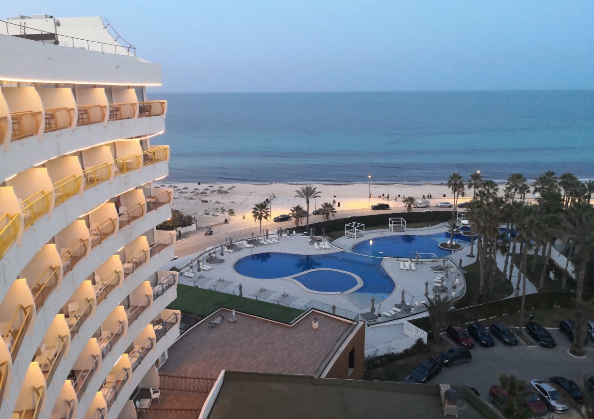 Pensamos en salir a tomar algo pero era complicado porque estos hoteles están a lo largo de la costa y hay que tomar algún transporte para ir al centro de Soussa y no nos apetecía, tampoco pudimos tomar nada en el hotel porque estaban todas las mesas ocupadas así que decidimos irnos a descansar.