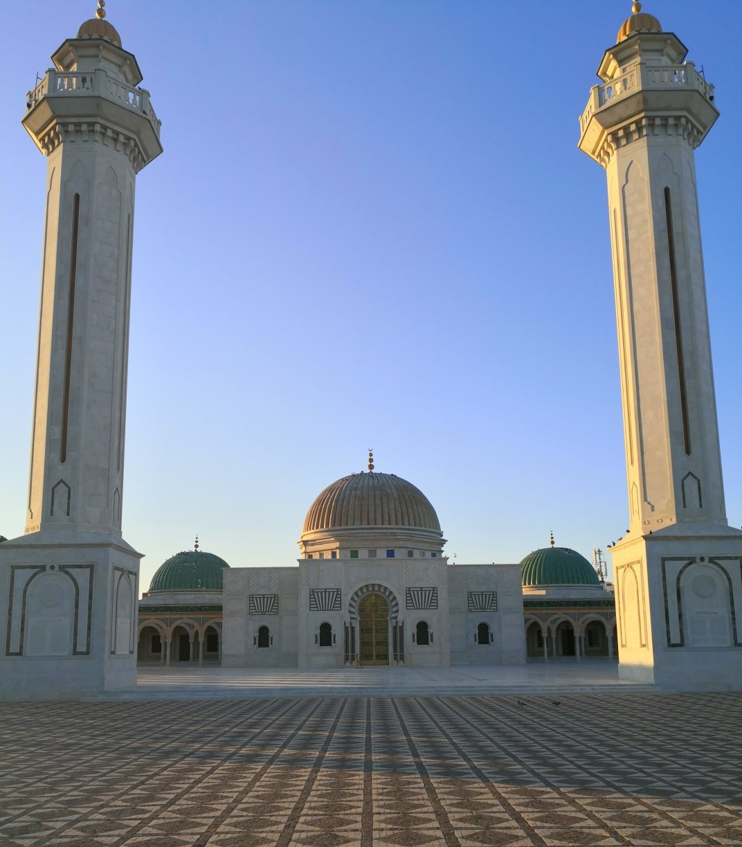 Para llegar finalmente al Mausoleo de Habib Bourguiba, que es la tumba del primer presidente de Túnez, y por tanto el creador del país actual. Murió en el año 2000 y aunque no pudimos ver el espectacular mausoleo por dentro, destaca aunque sea por fuera por su grandiosidad, con su gran cúpula dorada flanqueada por dos altísimo minaretes.