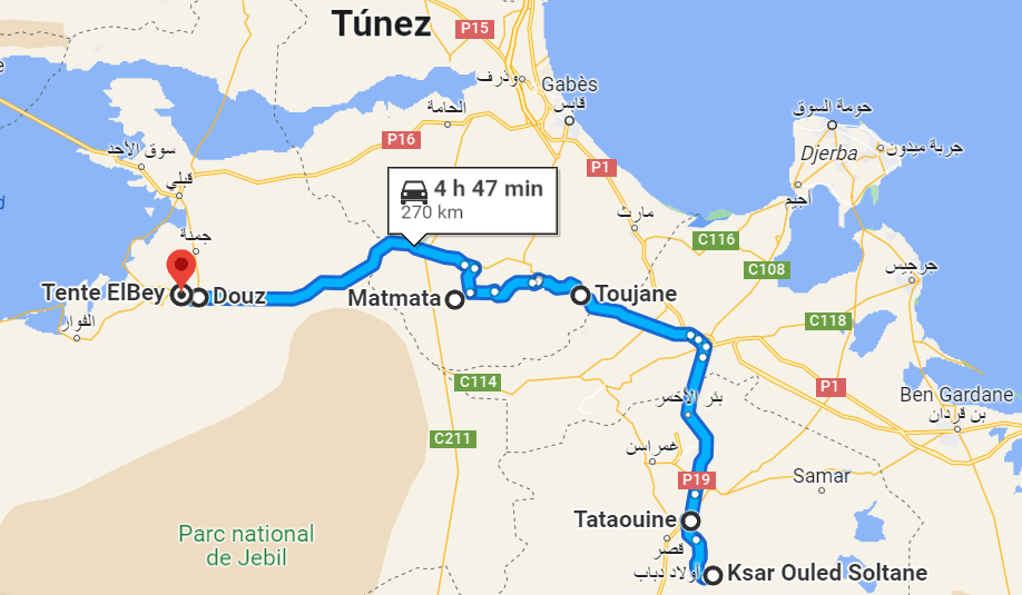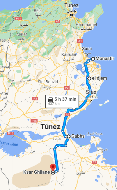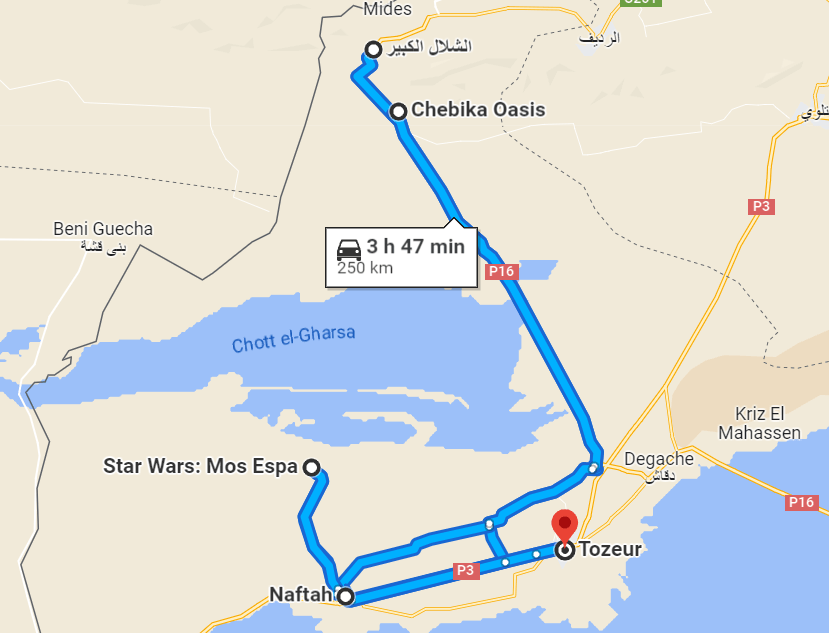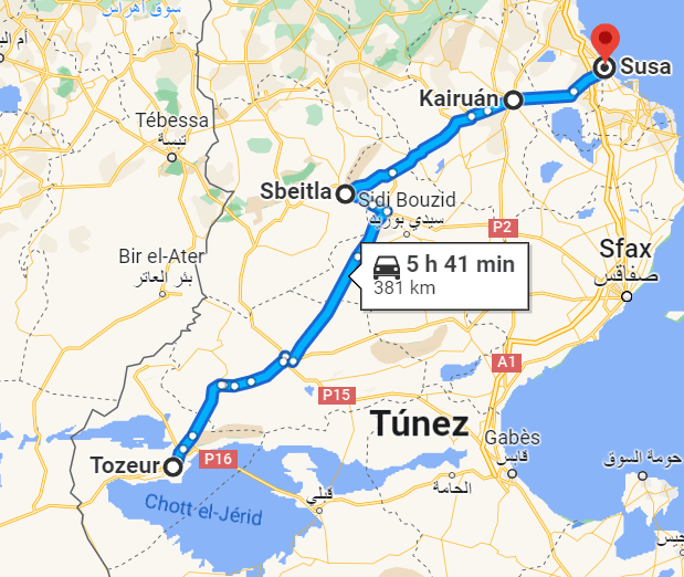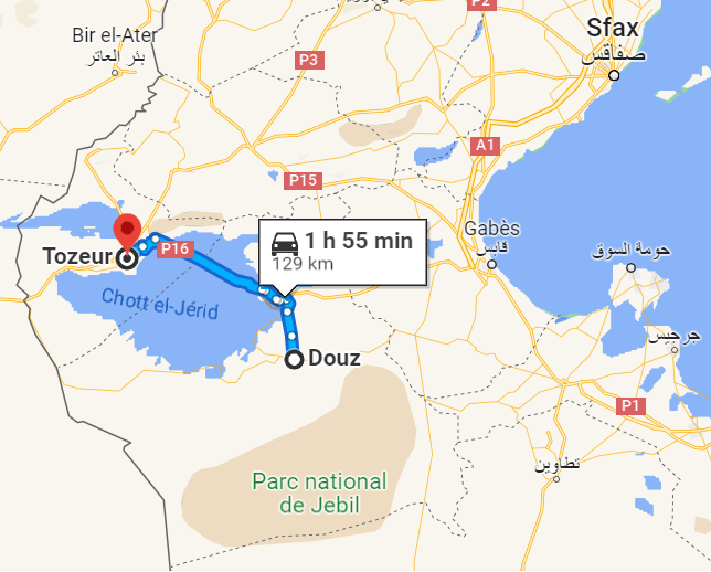 Aquí como siempre os marco en Google Maps la ruta de ese día, de nuestra segunda jornada en Tozeur y sus alrededores.