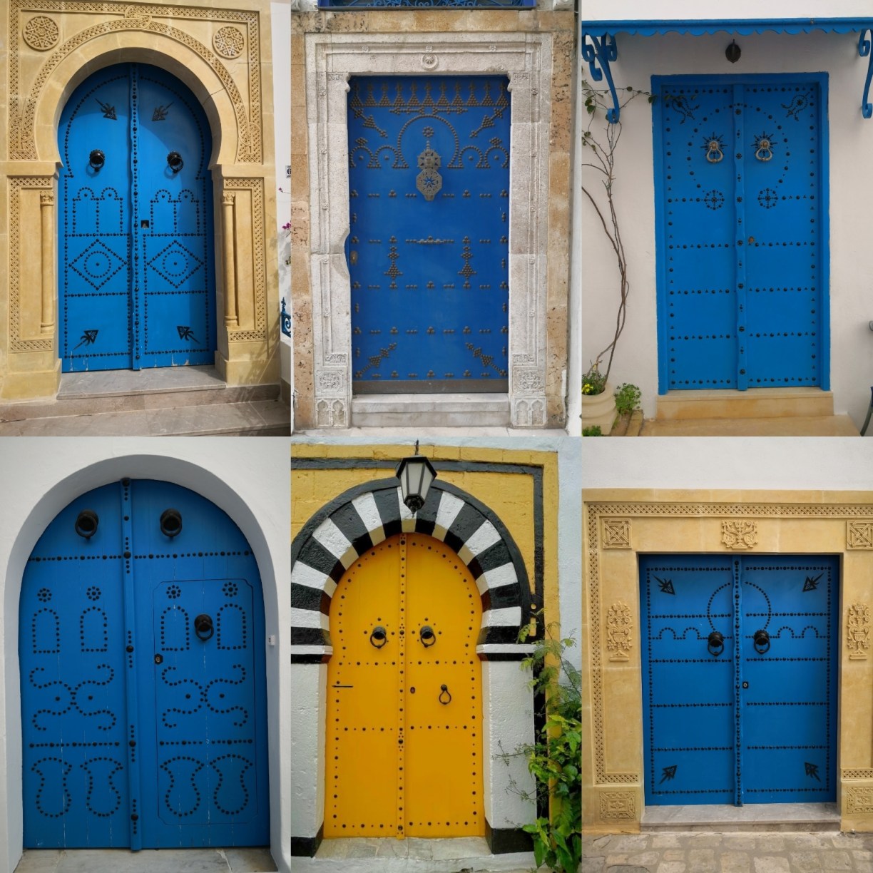 Las puertas en Túnez y en general en el mundo islámico son un símbolo de fé, hospitalidad y bienvenida, pero también de protección, por eso también están llenas de amuletos, formas geométricas, medias lunas, manos de Fátima para ahuyentar el mal de ojo, etc.
