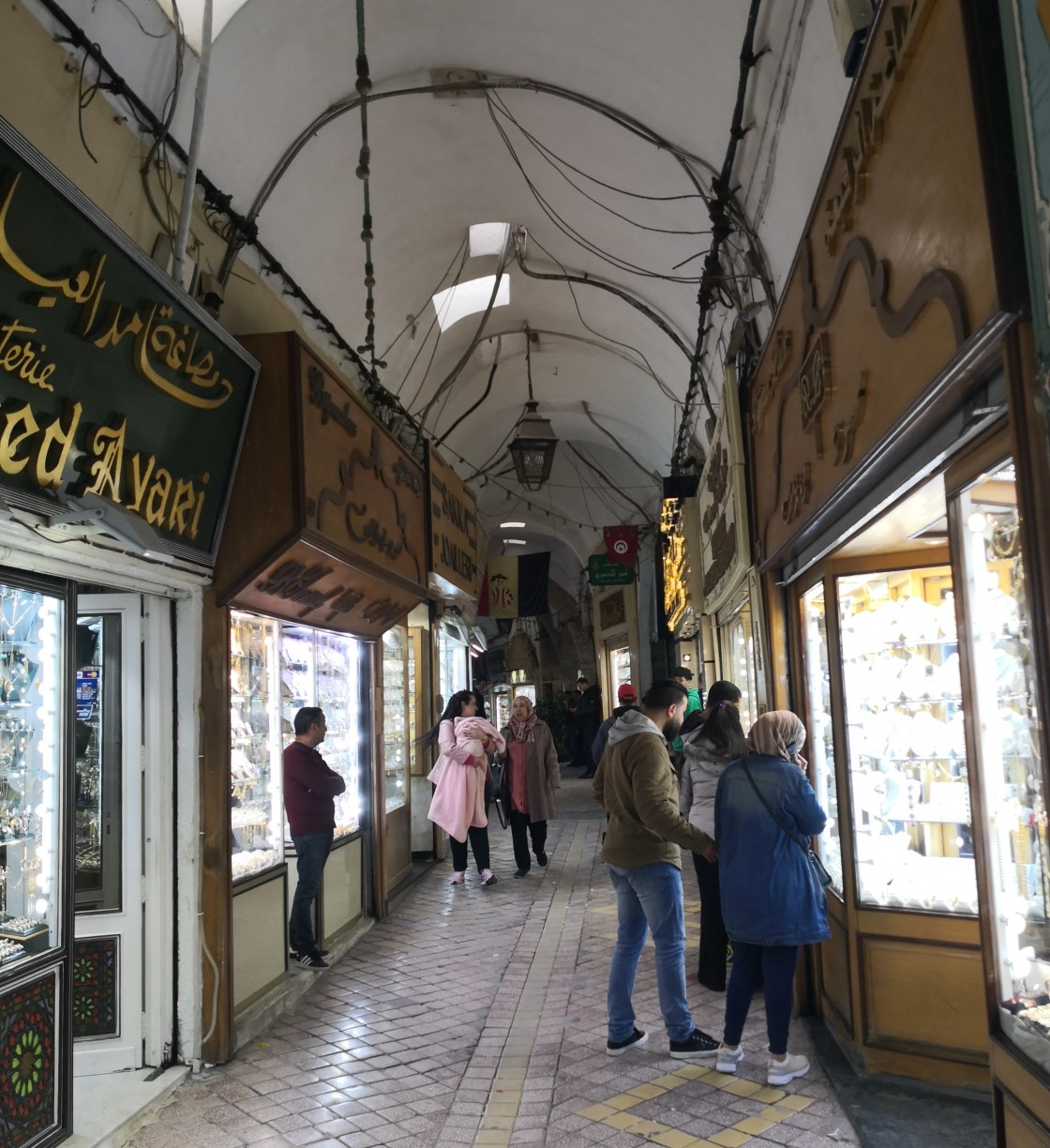 Pronto nos encontramos con la Mezquita Zitouna, que es el gran centro patrimonial y espiritual de la ciudad. Muy cerca de la mezquita está ya el Zoco El Bey (Dar El Bey), un mercado cubierto, el típico zoco pero infinitamente más tranquilo que el de El Cairo, Estambul o Marrakech, por decir alguno que he visitado, mucho mejor así.