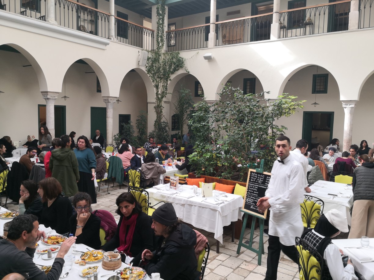 Hicimos una pausa para comer en un restaurante llamado Fondouk El Attarine, muy céntrico, en un bonito patio interior y que estaba hasta arriba de gente.