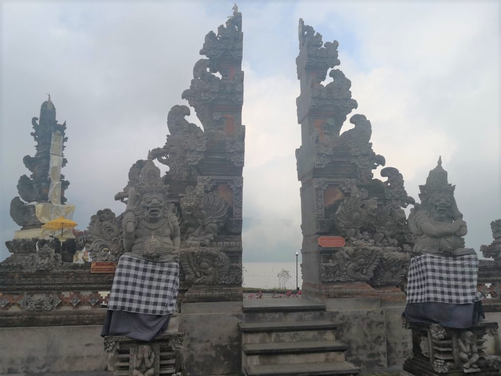 A continuación nos acercamos al mirador de Kintamani donde podréis disfrutar si las nubes lo permiten, que no fue nuestro caso, de una fantástica vista del volcán y el lago Batur, que se encuentran uno al lado del otro. El volcan Batur es uno de los volcanes en Bali y tiene 1,719 metros de altura. Esta montaña ha registrado más de veinte erupciones, la mayor de las cuales ocurrió en 1926 que casi dañó toda el área de Kintamani. El volcan Batur es también uno de los mejores lugares para escalar en Bali, cada mañana, muchos turistas suben por sus laderas para disfrutar de la belleza del amanecer.
