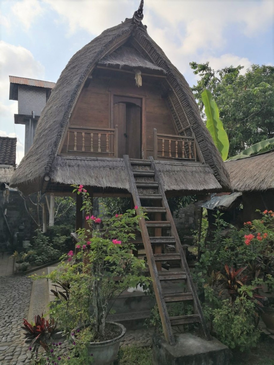 La casa típica balinesa es un patio rodeado por un muro para mantener alejados a los malos espíritus, decorada con estatuas de guardianes y con una entrada que generalmente se encuentra siempre abierta. Al traspasarla sorprende ver la cantidad de pequeños edificios que hay en la misma, cada uno de los cuales tiene su función y están construidos no de manera aleatoria sino basados en los cuatro puntos cardinales. Por ejemplo en su parte central hay un pequeño edificio como lugar para celebrar ceremonias.