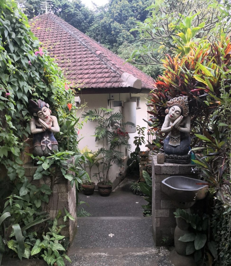 Pagaríamos por el traslado 400,000 rupias (unos 24€) al cambio. Yo ya no me complico cuando llego de un largo viaje a negociar un transporte en el momento. En aproximadamente una hora llegaríamos a nuestro alojamiento, que como tantos otros, es una casa acondicionada con unas pocas habitaciones que el propietario destina para los turistas, una opción muy sencilla y que permite, que al haber tantísimas en Ubud y en todo Bali, los precios sean tan económicos.