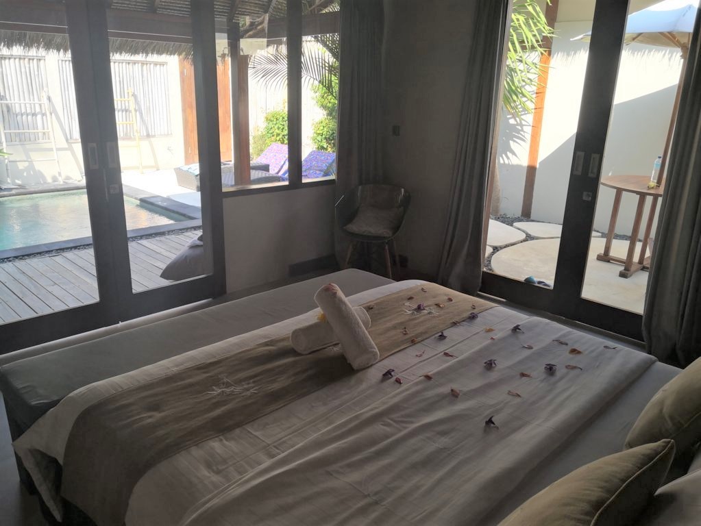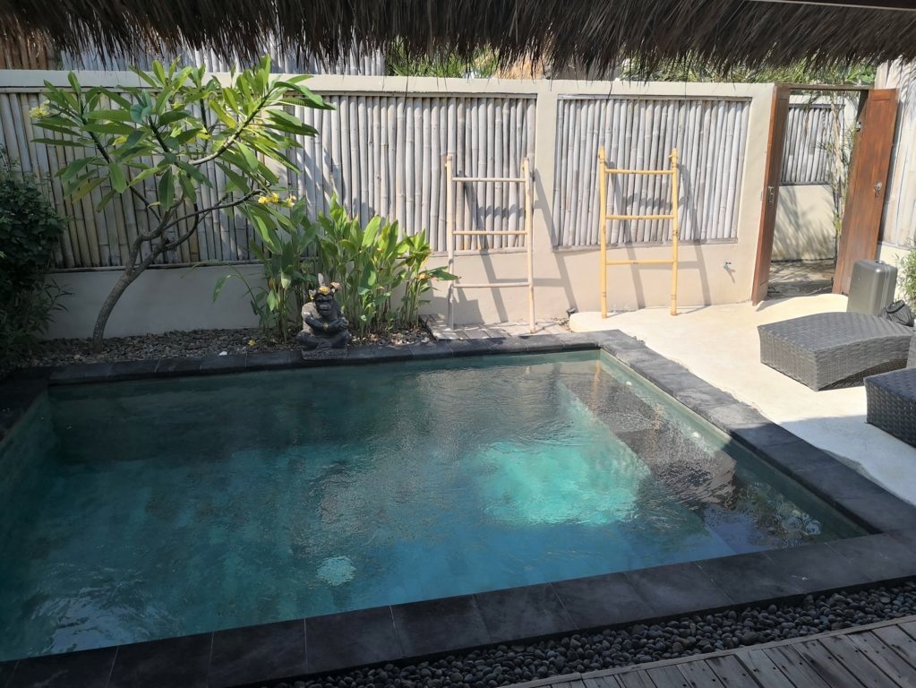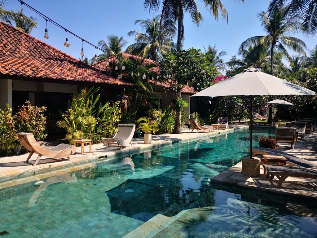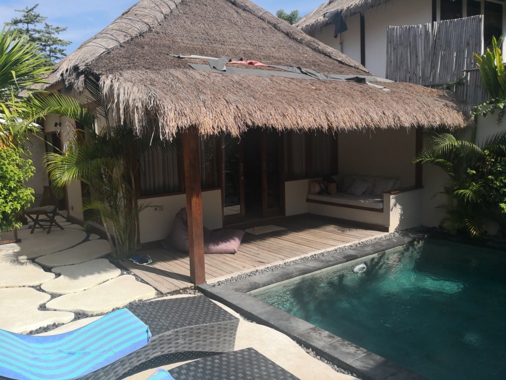 El alojamiento que había reservado con mucha antelación (a través de Booking.com como siempre) debía ser mejor que el anterior, valía un 30% más y dormiríamos dos noches. Pagamos 3,040,000 rp (unos 90€ por día) y tenía la particularidad, de ahí también el precio alto, de que además del bungalow, disponía de una pequeña piscina privada. Su nombre es Villa Marina.