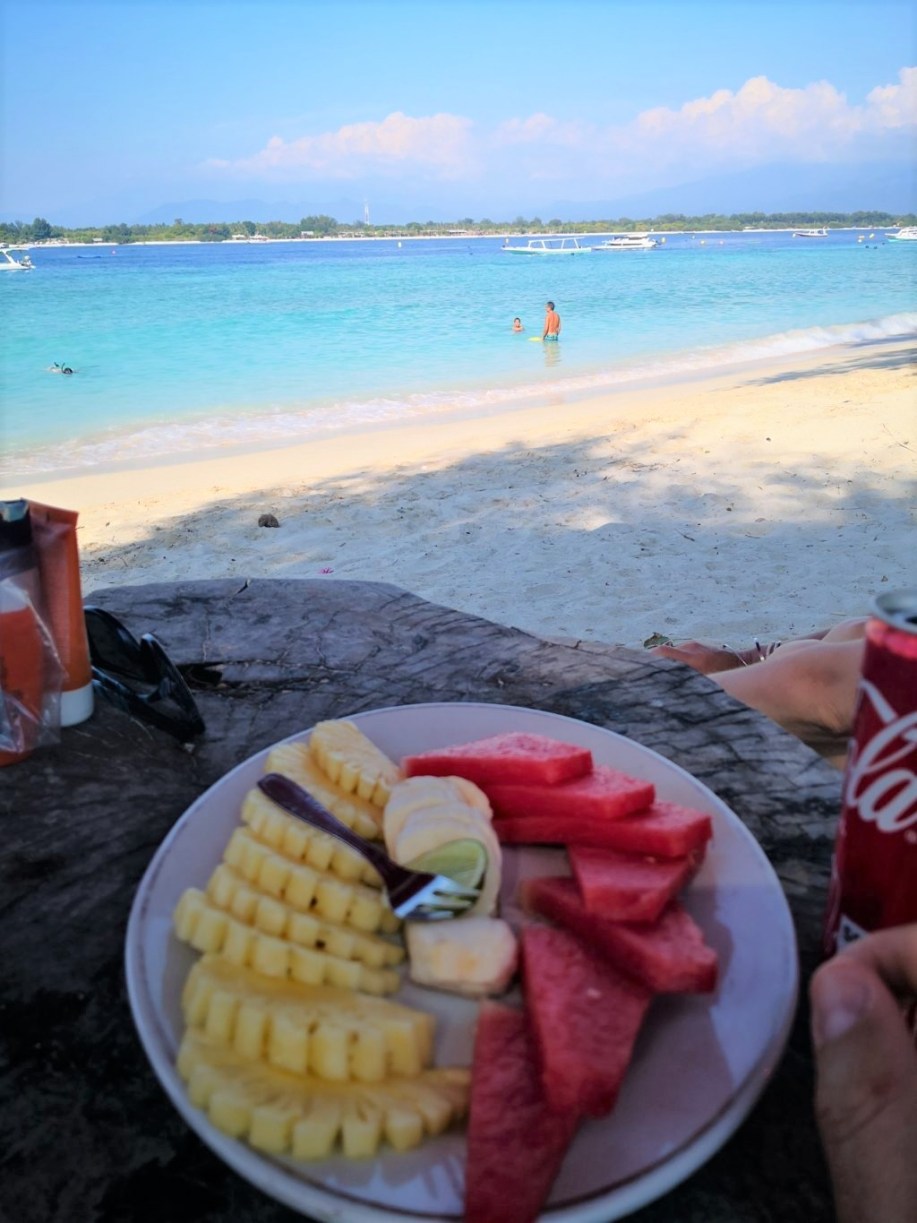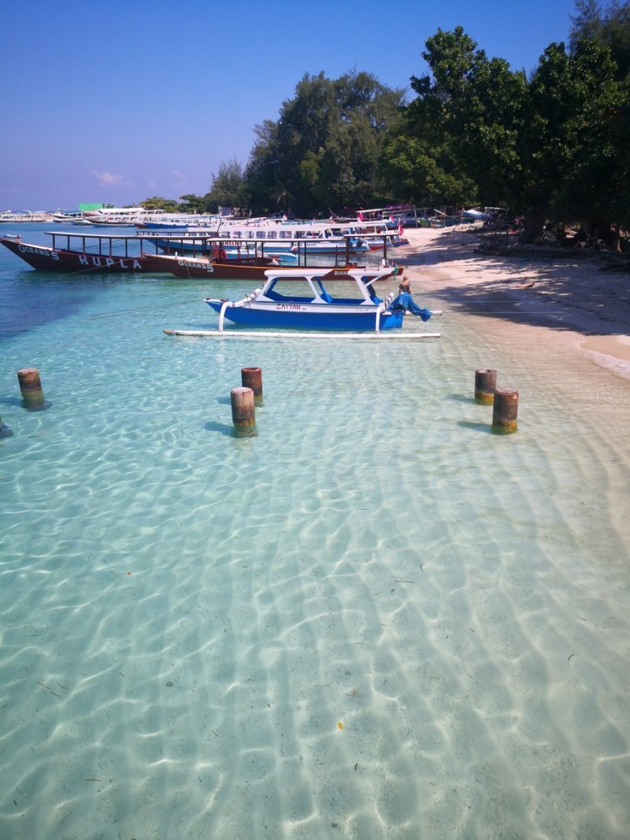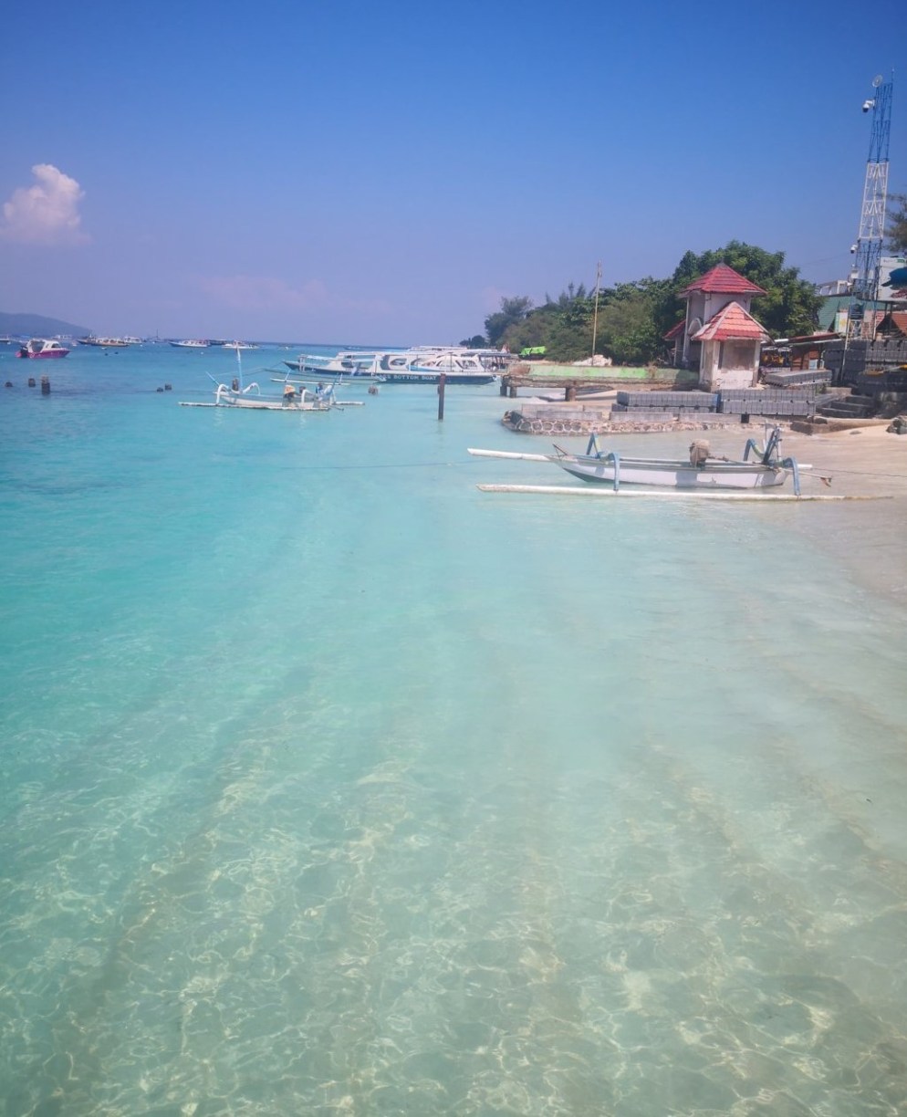 Último día en la isla y penúltimo en el país. Nos levantamos, desayunamos e hicimos la maleta para dejar el hotel. Como ya teníamos el billete comprado nos acercamos caminando al puerto para recoger nuestros pasajes. Nuestro ferry hacia Bali salía a las doce de la mañana (una pena que no saliera antes para aprovechar más tiempo en el destino) así que nos fuimos al puerto y allí esperamos. Tuvimos por última vez la vista a las aguas cristalinas de estas islas, qué maravilla.