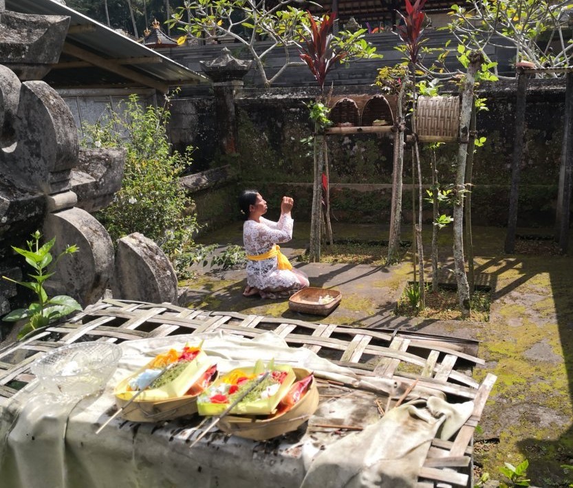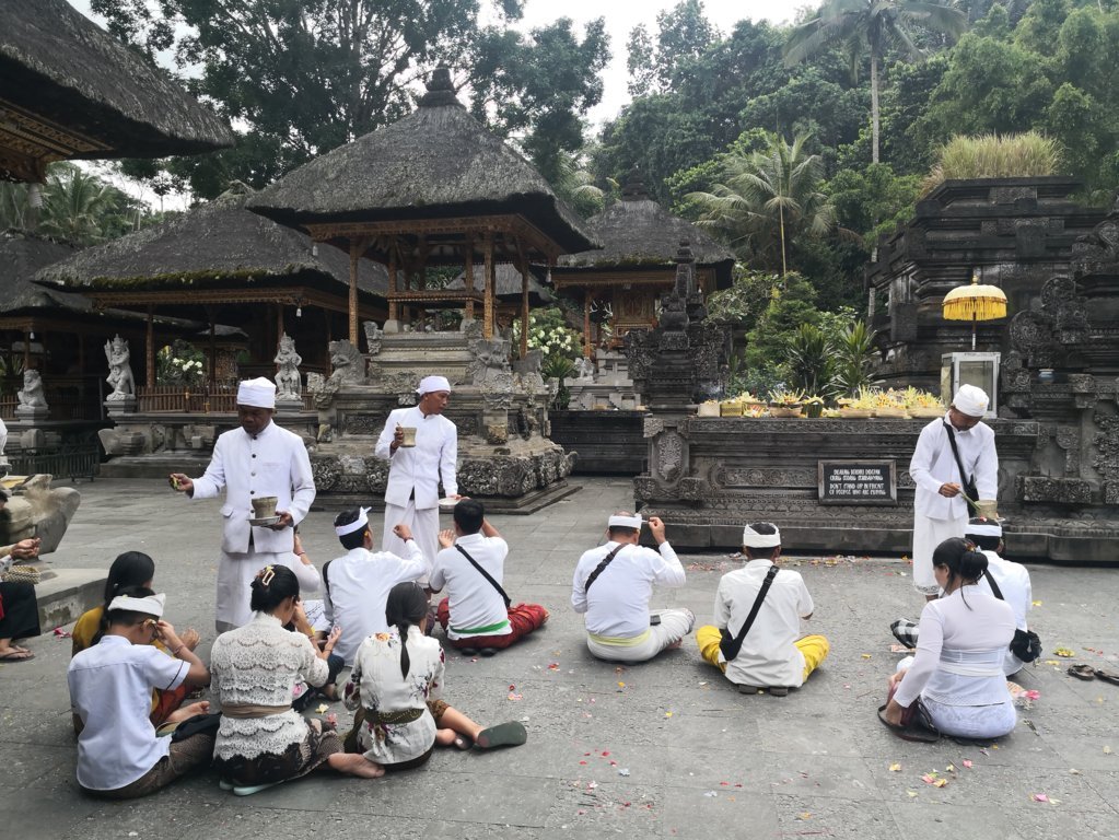 Aprovecho la visita a este templo, uno de lo más famosos para tratar de responder a la pregunta ¿de dónde viene el hinduismo balinés? pues llegó a ellos por los comerciantes hindúes, cuyas ideologías con el tiempo, se fueron adaptando a sus creencias animistas ( que creen que cualquier elemento del mundo natural está dotado de movimiento, vida, alma o consciencia propia). Esto significa que el hinduismo balinés no está tan dedicado a los principales dioses del hinduismo hindú, si no que está mucho más relacionado con la naturaleza. Una de las primera preguntas que le hicimos a Cristina fue esa ¿a qué figura adoráis? la respuesta fue, a ninguna especialmente, nos contó que ellos creen en todo lo que tienen a su alrededor, que siempre deben hacer el bien y por supuesto creen mucho en los espíritus y la energía.