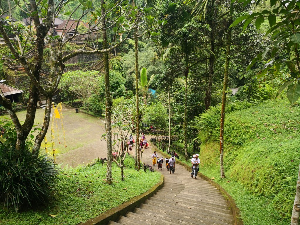De nuevo en ruta nos acercamos a visitar ahora el templo de Goa Gajah, famoso por su Cueva del Elefante. El complejo es muy muy bonito, y desde arriba se puede ver las dimensiones y el impresionante entorno.