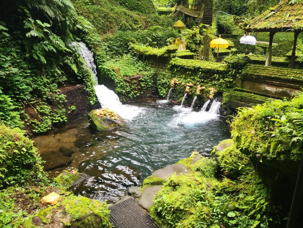 Para llegar a un sitio que no podía ser más bonito, rodeado de musgo, helechos y una humedad increíble. La piscina donde se hace la purificación estaba vacía, recordar como estaba la de Tirta Empul, repleta de gente.
