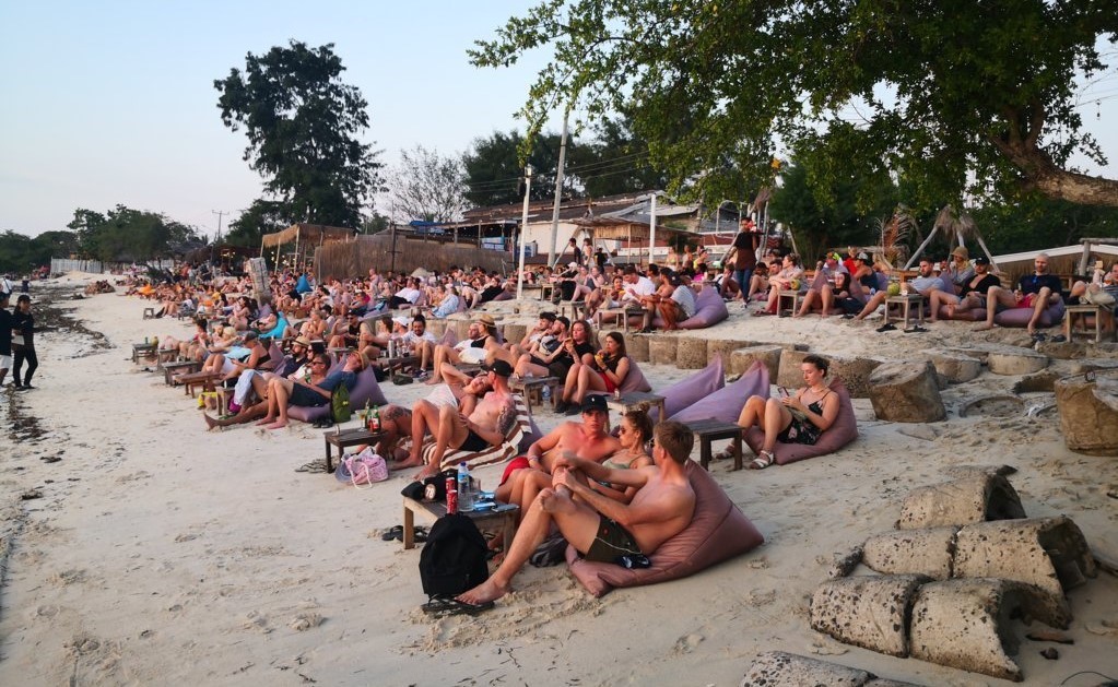 Hago un inciso si me lo permitís para hablar de la gente en los lugares turísticos. Siempre he dicho que odio las aglomeraciones pero tengo que decir que tanto detesto el excesivo turismo como el poco. A mí definitivamente me gustan los lugares con animación por la noche y en el que haya gente cenando, tomando algo, etc, no hay nada más deprimente (y en las islas Jónicas lo sufrí) que que haya pocos visitantes. Por eso Trawangan, sabiendo que era mayo y que no era temporada alta, creo que es la mejor isla con diferencia. Después de que se va el sol a las seis de la tarde, ¿qué alternativas hay si no es salir a cenar y tomar algo?. Había noches que no veíamos mucha gente cuando salíamos a cenar y quizás era un tema de como solemos decir en mi trabajo, de «decalaje» de horas, o bien la gente cenaba antes de nuestra hora (21h aprox) o luego ya salían a partir de medianoche los más noctámbulos a darlo todo hasta la madrugada.