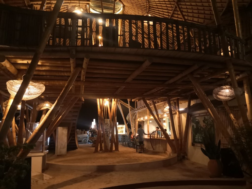 Tras esconderse definitivamente el sol, regresamos al hotel, nos arreglamos y salimos a cenar a la zona del pueblo. Terminamos haciéndolo casi al final del mismo, en un impresionante edificio de bambú que por lo visto es un resort de lujo de origen alemán, y en el que cenamos muy bien de nuevo. El lugar se llamaba Pearl Beach Lounge.