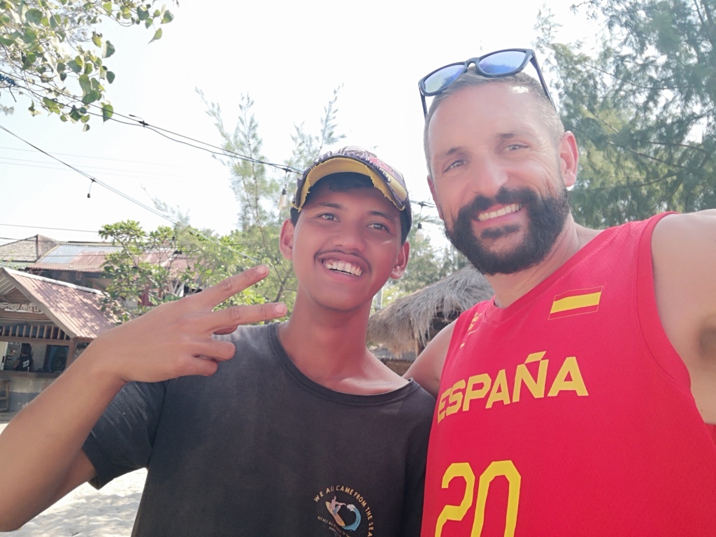 Deciros que lógicamente hay barcos colectivos que os llevarán de isla a isla por menos de un euro pero por comodidad y ganar tiempo, preguntamos a un simpático chico que trabajaba en un chiringuito si conocía a alguien que nos llevara de forma privada a la otra isla, nos dijo que sí, por 300,000 rp (18€) , y como no conseguimos reducir el precio mucho y preguntamos a otro que encontramos y nos daba el mismo precio, decidimos aceptar. Este chico, llamado Dodo, y que habíamos conocido el día anterior era más que majo, pude hablar con él en inglés durante un buen rato y me pude dar cuenta de nuevo de lo privilegiado que soy. Con un sueldo mensual de 150,000 rp (unos 90€) tenía incluso que ayudar a sus padres. ¡Un abrazo fuerte amigo!