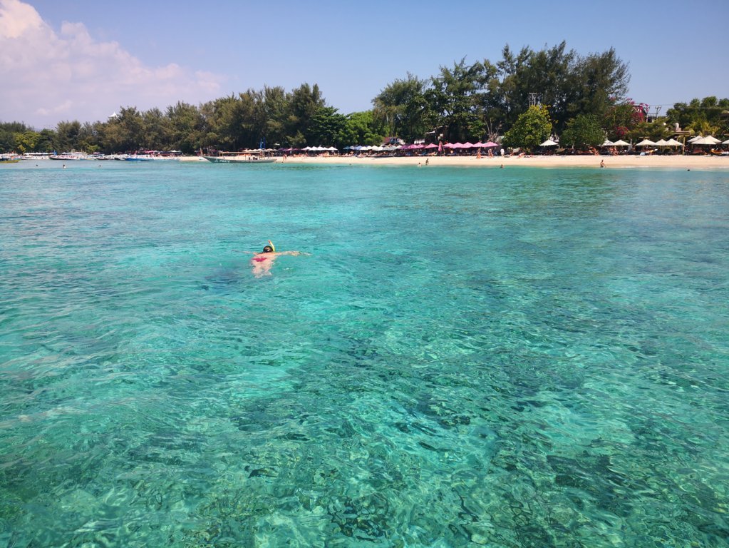 Y el disfrute no se terminaba ahí, porque adentrándote un poco más en el mar, a apenas 15 – 20 metros pero a nu mucha profundidad, se abría un fondo de coral con muchos peces de colores de los que disfruté tanto como con la tortuga. Este fondo no tiene nada que envidiar al que ví en la jornada en Nusa Penida, y sobre todo, ¡era gratis!. Por eso decidí no coger ningún tour alrededor de las islas en los que van parando en diferentes sitios para hacer snorkel. Aquí disfruté tanto y estando sólo, sin prisas, que me bastó de sobra.