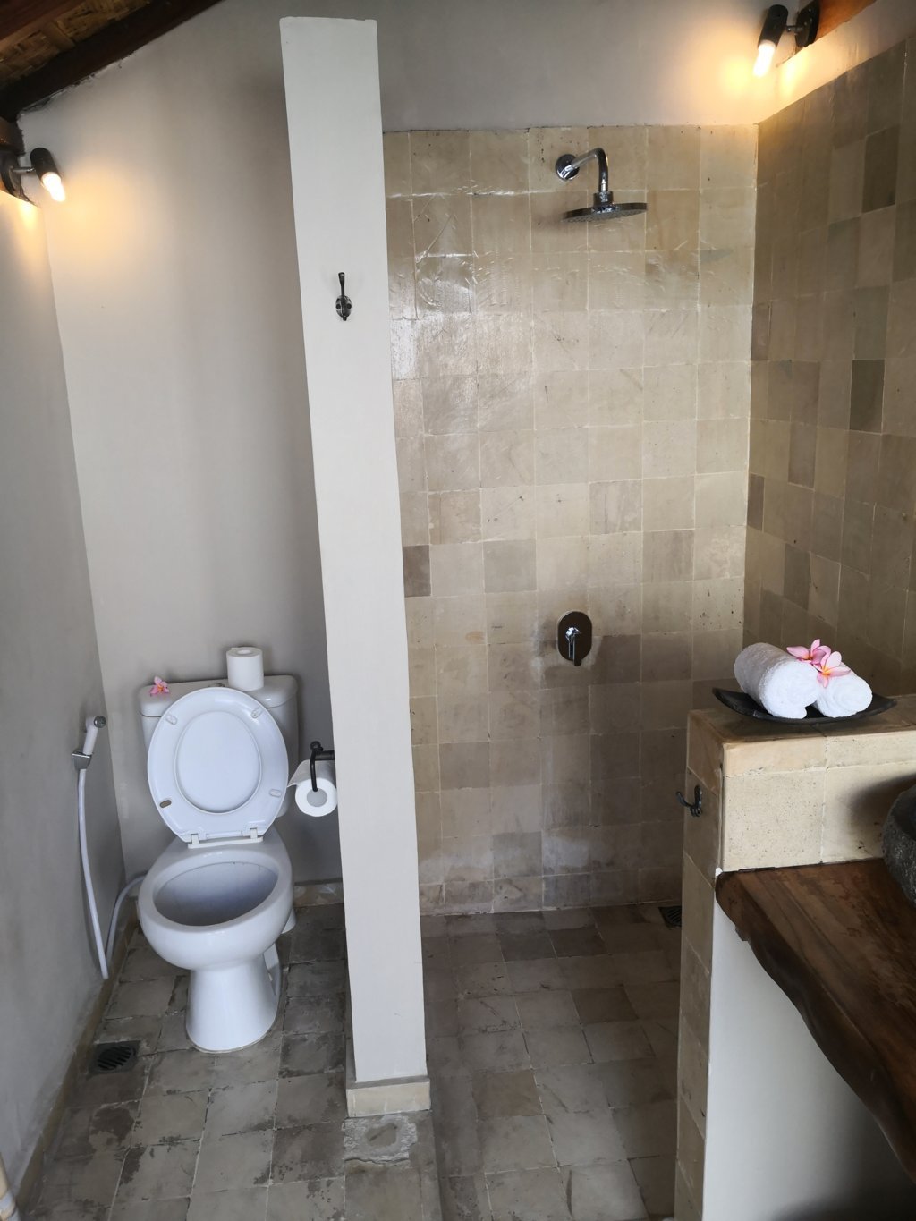 El bungalow estaba bien, está claro, pero repito, los detalles no eran los del alojamiento del que veníamos y además me daba rabia porque había sido más caro. Además, y eso ya lo sabía de leerlo en los comentarios de anteriores huéspedes, se oía perfectamente la llamada al rezo de la mezquita de la isla (recordar que estas islas son mayoritariamente musulmanas como el resto del país). Oir el megáfono al anochecer no molesta tanto, pero a las 5 y media de la mañana con el amanecer, ya es otra cosa 🥱. De todas maneras de esto no me quejo porque lo sabía de antemano y tampoco fue un problema insalvable.
