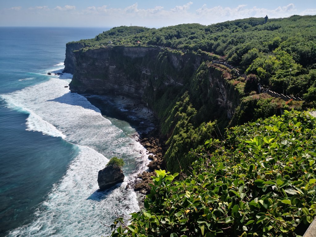 Como cerca del alojamiento teníamos una de las atracciones más visitadas de Bali y dado que el vuelo no salía hasta las seis de la tarde decidimos acercarnos a ver el templo de Luhur Uluwatu. Solicitamos un transporte por la APP Grab, que es la Uber de toda esta zona asiática, y un simpático conductor nos acercó hasta allí ya y nos esperó para la vuelta (este es su número de teléfono por si le queréis contactar vía whatsapp +62 81338533005).