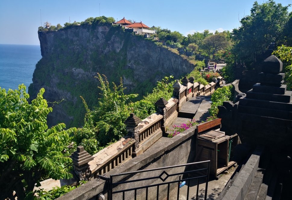 Nuestro templo de destino es famoso sobre todo porque se encuentra en el borde un acantilado, y tiene una particularidad, que está lleno de monos alrededor y de nuevo no te dejan disfrutar del lugar con tranquilidad.