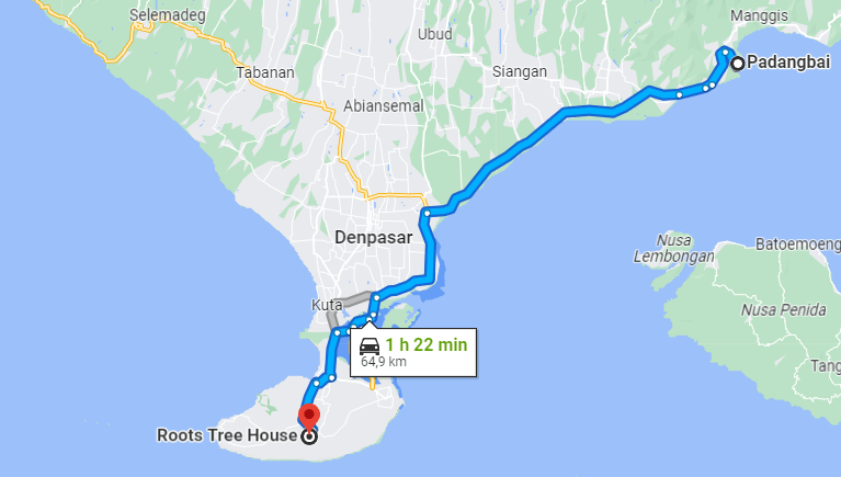 Para esta última noche y por no regresar con el ferry en el mismo día en el que teníamos que coger nuestro vuelo de vuelta por si había algún problema, decidí buscar un alojamiento en el sur, cerca del aeropuerto. Por casualidad encontré el fantástico Roots Tree House, un alojamiento de lo más original, ¿por qué? pues porque las habitaciones estaban colgadas en los árboles, en unas preciosas cabañas de madera.