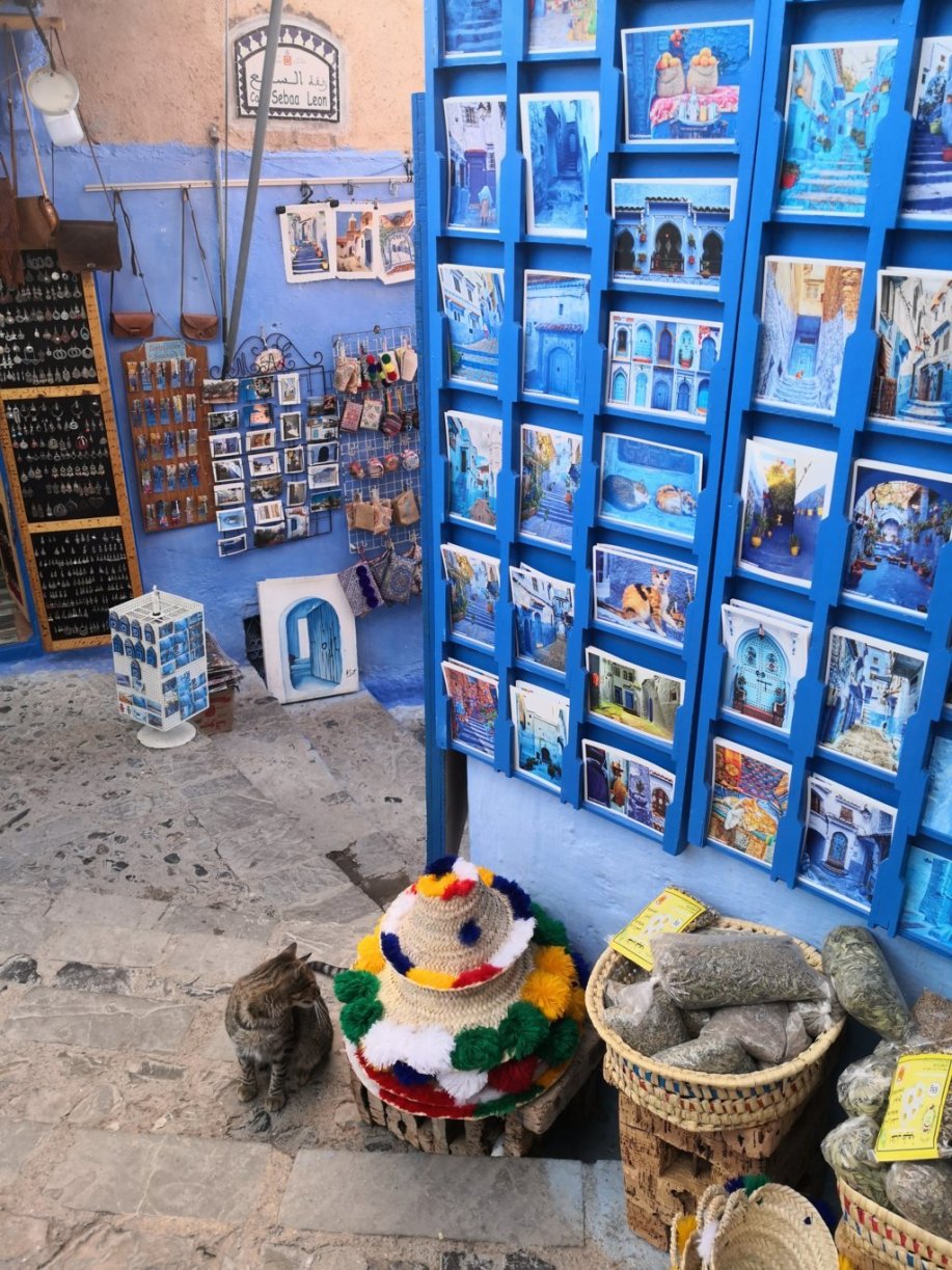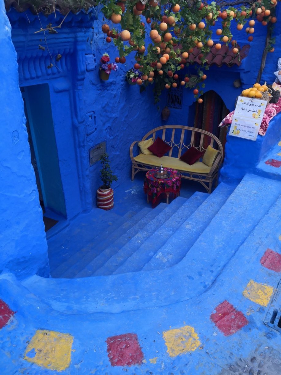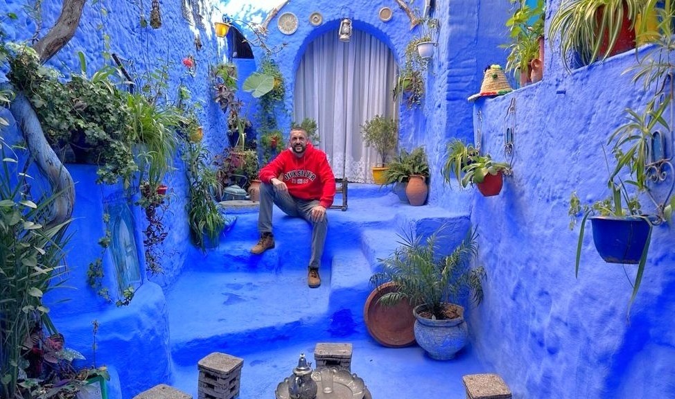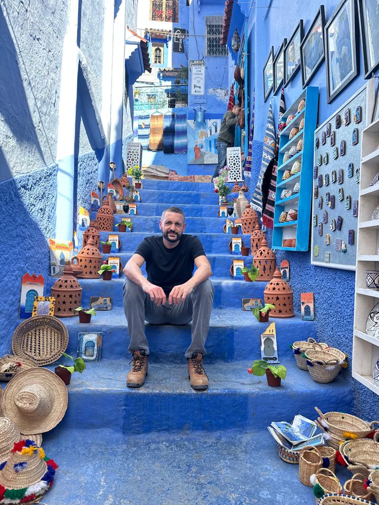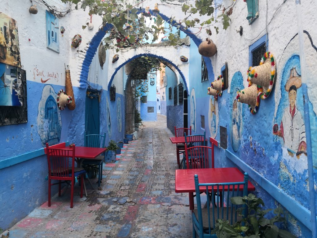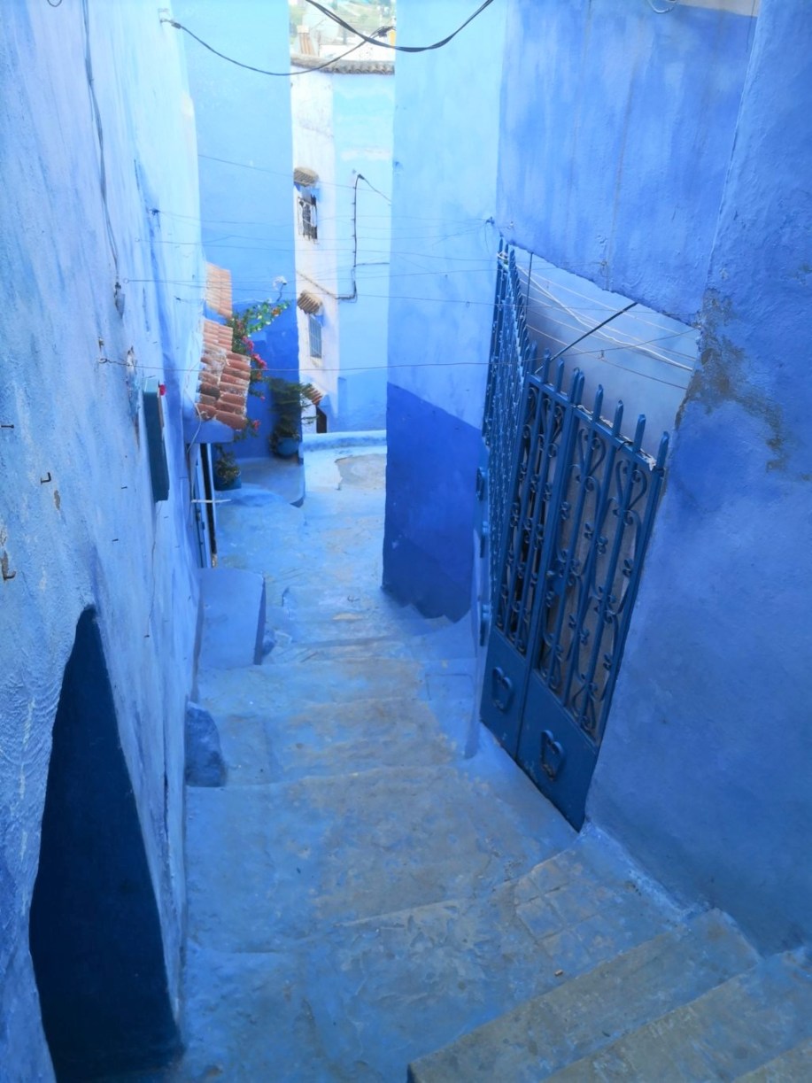 ¿Y la otra pregunta es….? efectivamente, el por qué de su color azul 💙. Nuestro cicerone, con mucha gracia, nos dice que no tiene nada que ver con que ahuyenta a los mosquitos, porque en su casa, y nos fue enumerando todo lo que tiene azul… pues bueno, a pesar de eso, hay mosquitos 😂. La teoría que él cree más factible, es que la tradición de pintar las calles de ese color que se ha intensificado a partir de los años 70 del pasado siglo provenía de los judíos refugiados en la ciudad, que en la década de los años treinta, comenzaron a pintar sus casas de azul para simbolizar el color del cielo, en alusión al concepto de libertad y de acercarse a dios, es por tanto digamos, un motivo espiritual y de fe, sentencia convencido Abdennour.