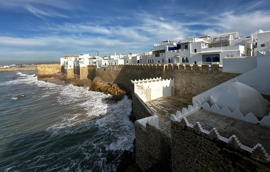 Como era pronto, y aunque era rodear un poco, le propuse (yo soy mucho de proponer y de improvisar sobre la marcha, y la capacidad de reacción dice mucho de nuestro acompañante) pasar antes por la localidad costera de Assilah (Arcila en árabe) para conocerla.