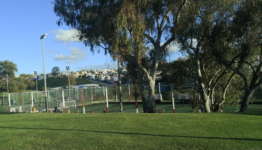 Llegamos al Parc Feddan, una plaza muy bonita y en el que se aprecia una bonita vista de la ciudad y sus casas blancas hacia lo alto de la colina de nombre Dersa.