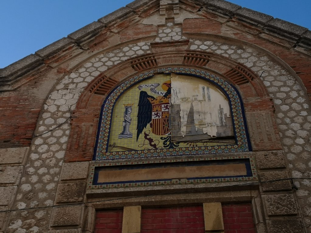 Cerca de este llegamos a un edificio de ladrillo cuya arquitectura enseguida me suena, yo que viví muchos años frente a un cuartel en Zamora. Efectivamente se trata de un antiguo cuartel que utilizó Franco y cuyo escudo con el Aguila que utilizó el caudillo todavía se puede apreciar cortado por la mitad en su fachada.