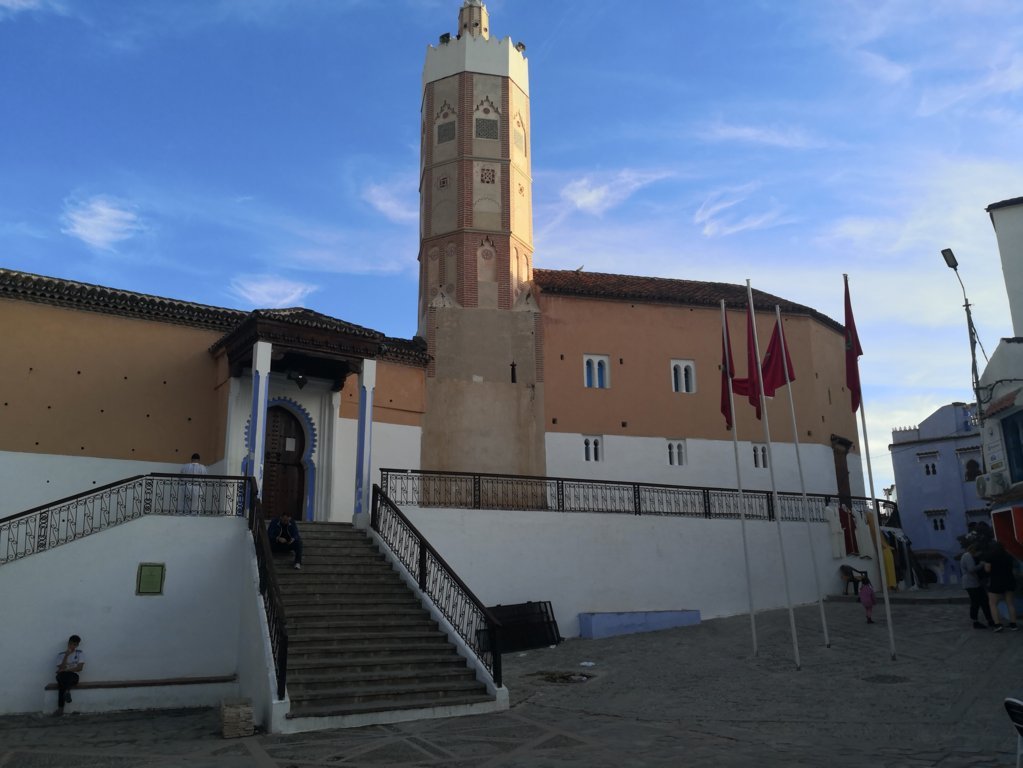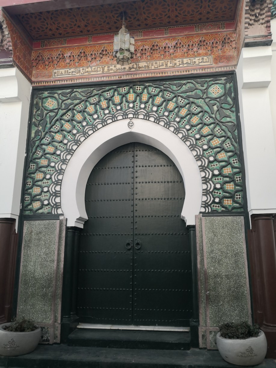 Continuamos bajando por la calle comercial de la Marine dirección a la nueva marina y nos encontramos con la llamada Gran Mezquita de Tánger, de color blanco y verde, y con un altísimo minarete que destaca en medio de la medina. Este templo fue ocupado por varias civilizaciones durante generaciones, fue templo romano e iglesia cristiana bajo dominación portuguesa hasta que el Sultan Sulayman la reconstruyó en 1815.