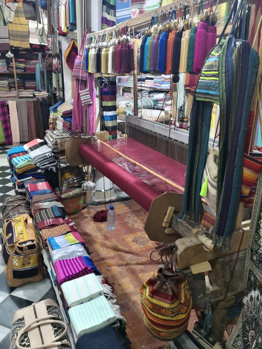 Descendimos la calle de los artesanos textiles, donde entramos en uno de los locales donde nos dieron una pequeña explicación de cómo todavía se fabrican las diferentes prendas a la manera y maquinaria tradicional.